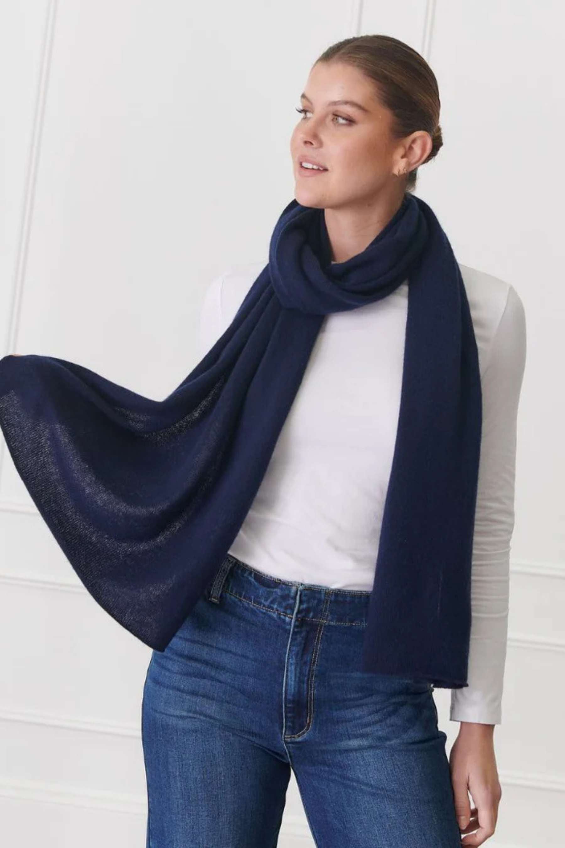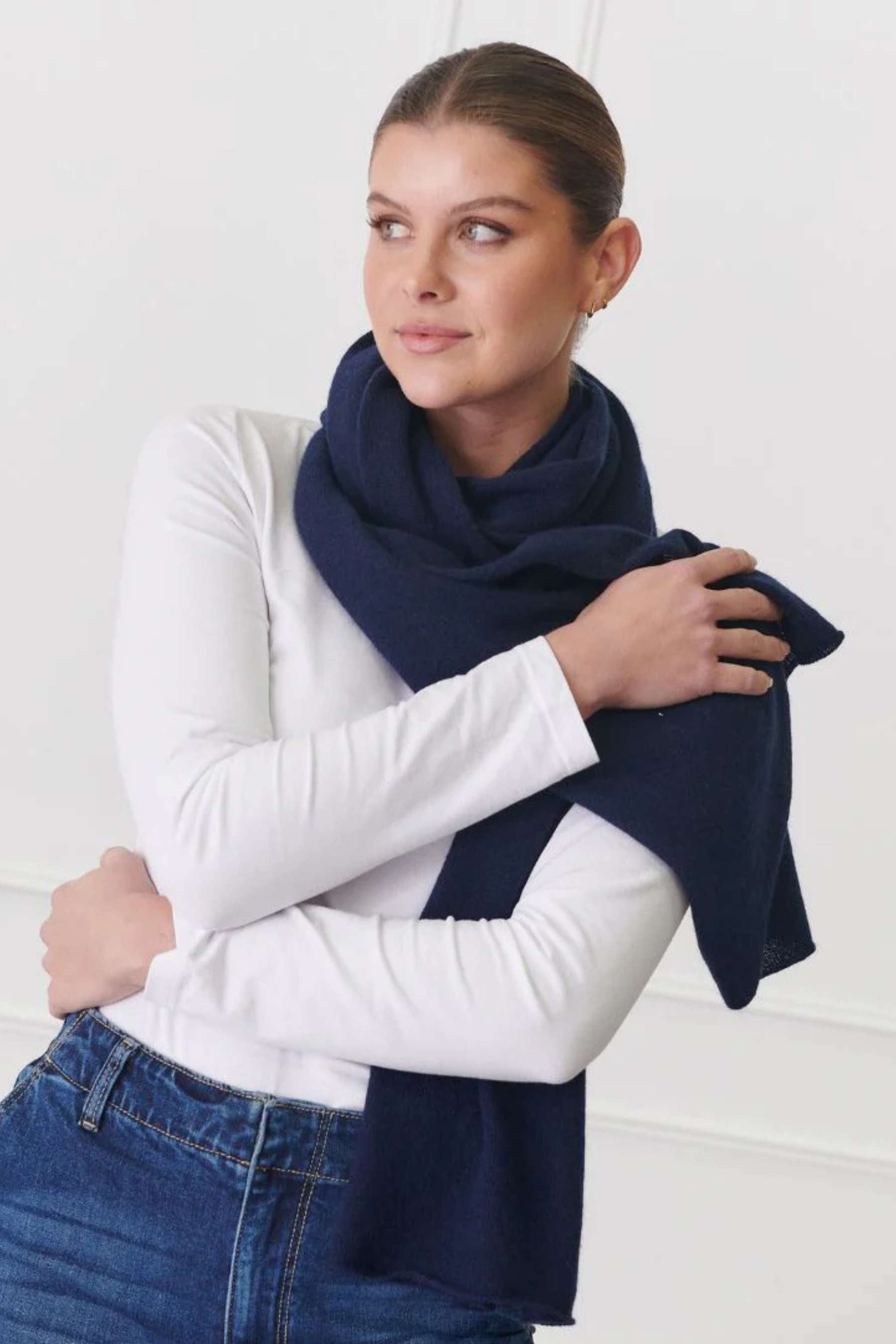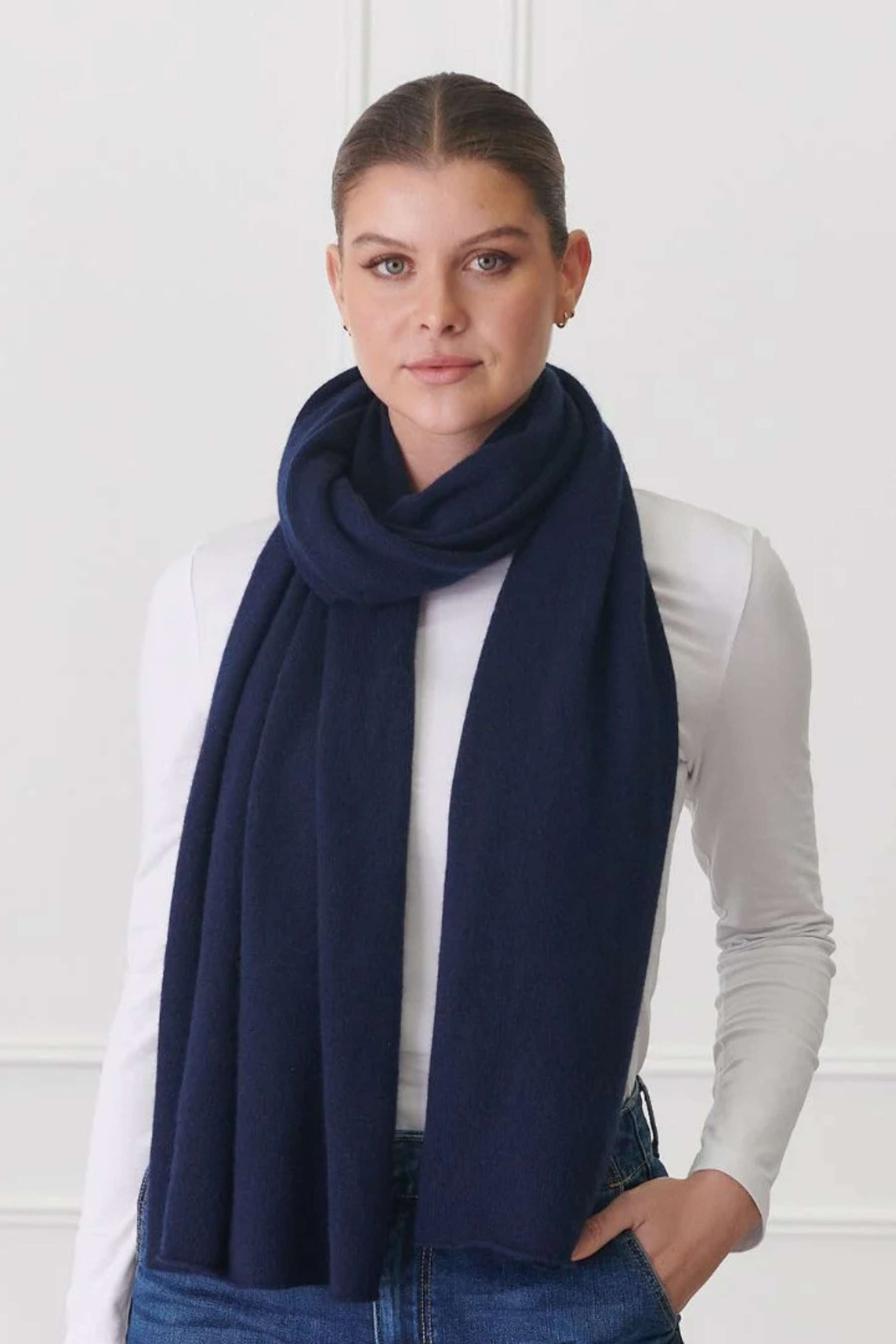 Crafted from 100% pure cashmere, the Cashmere Scarf Navy is a luxuriously soft and cosy item that will be treasured for years to come. Lightweight yet generous in size, this navy cashmere scarf is the perfect cool season accessory.