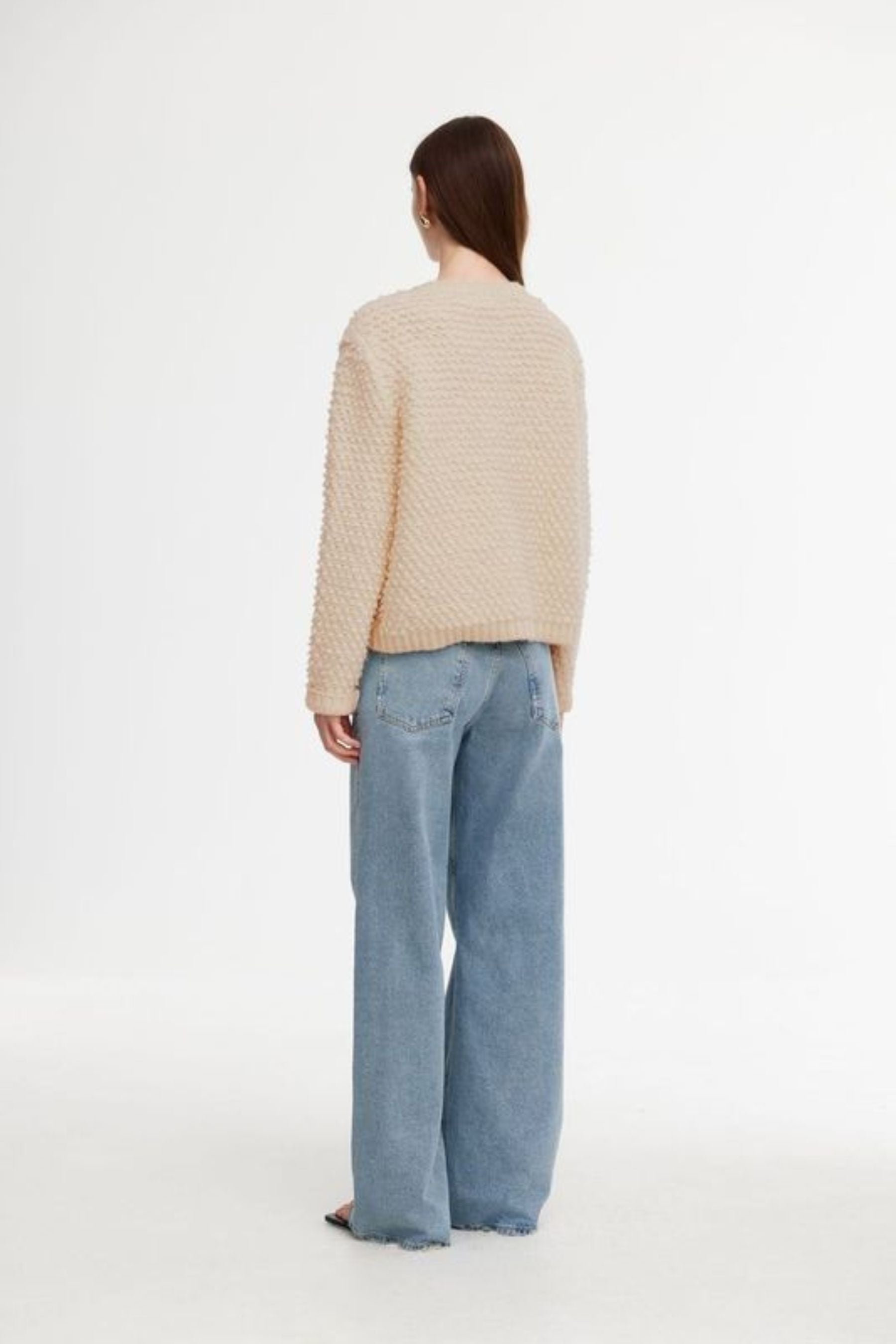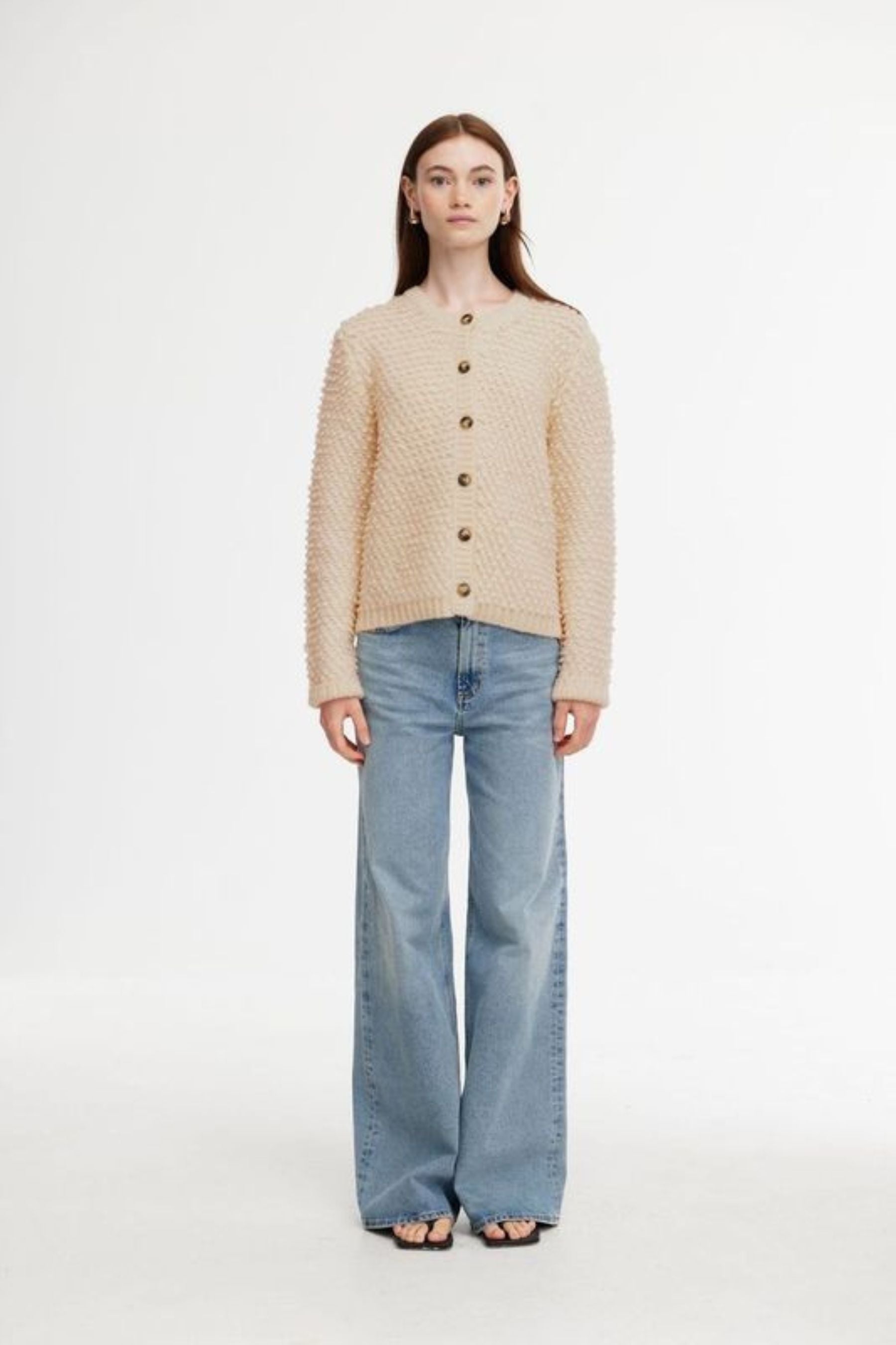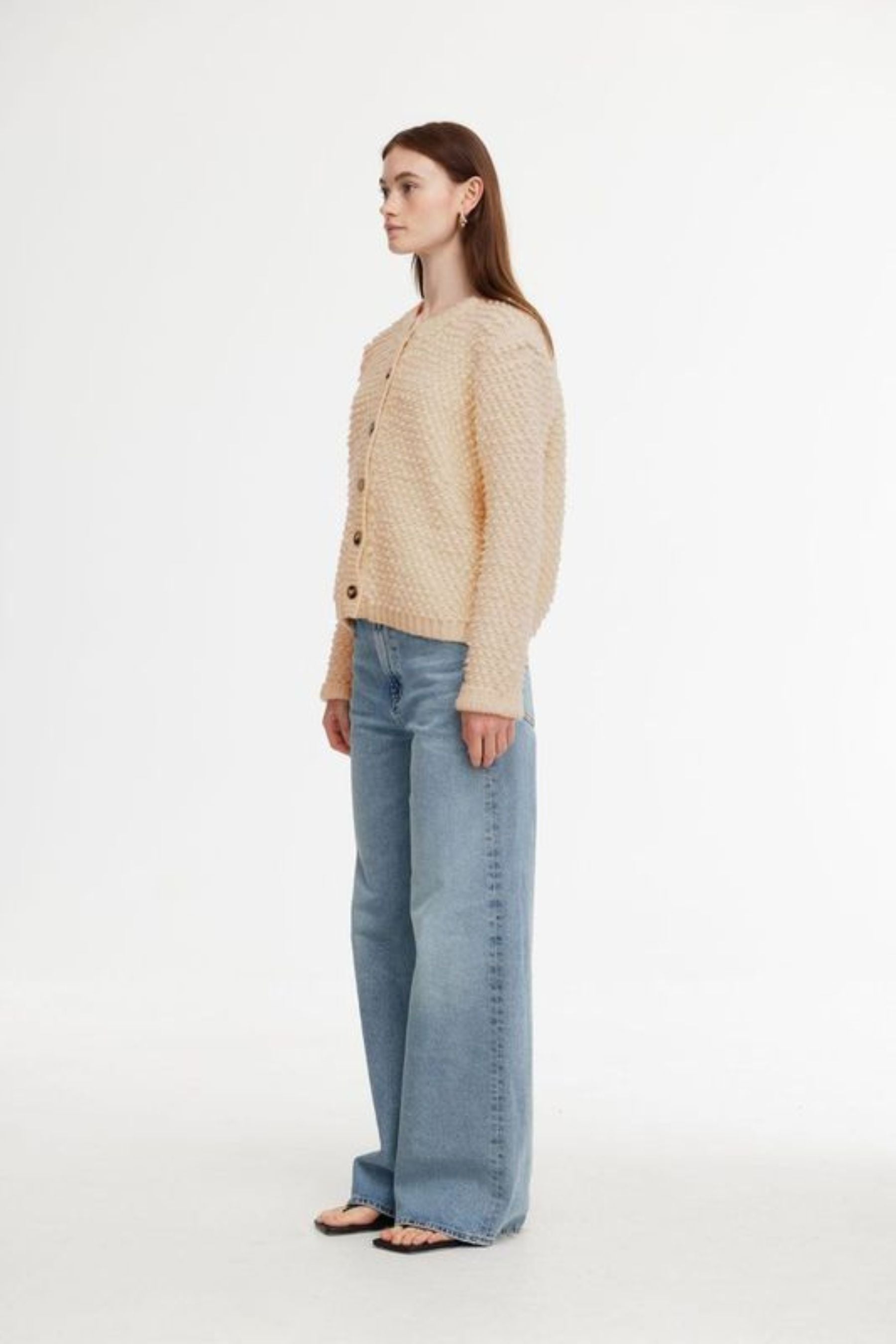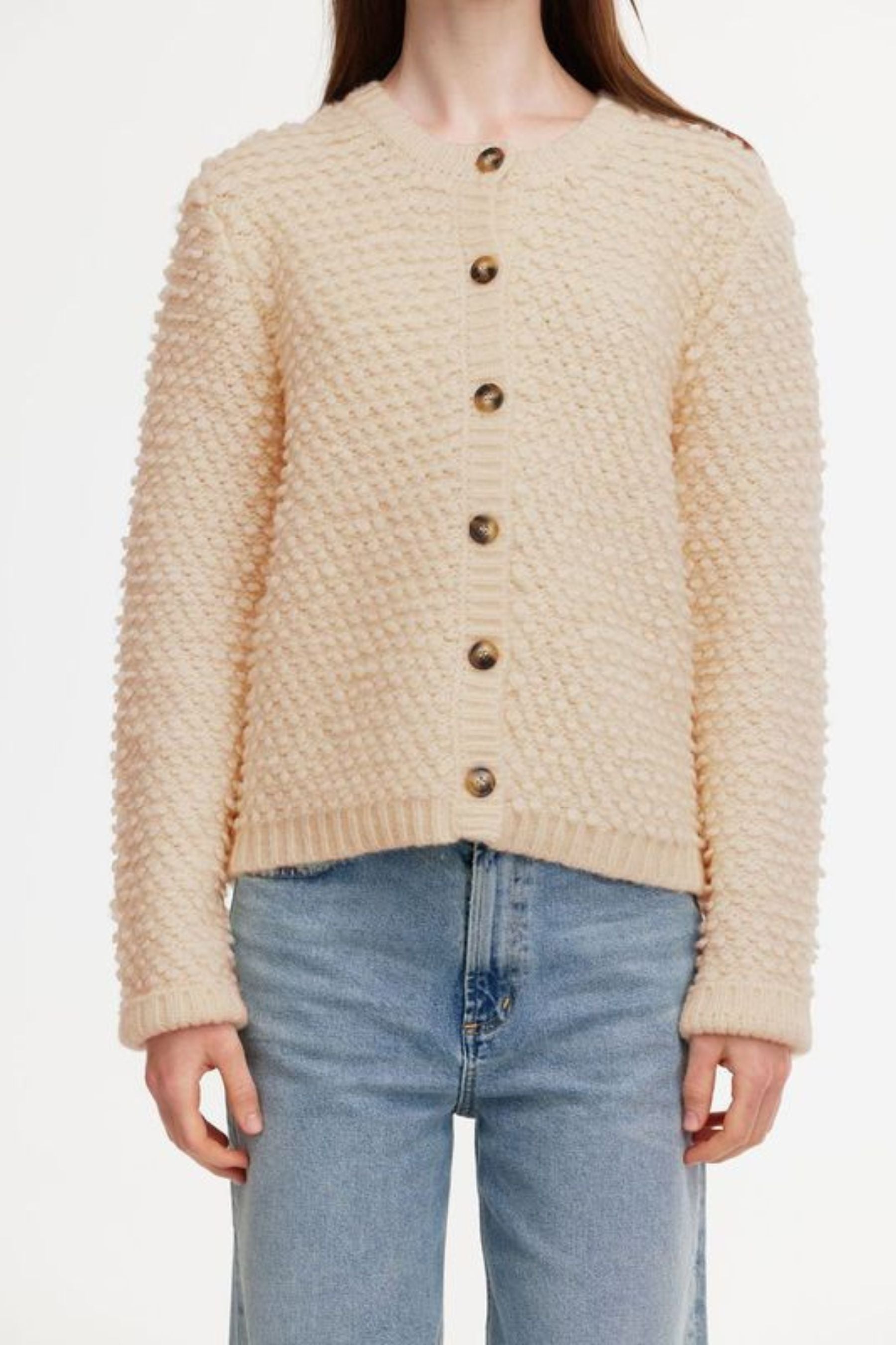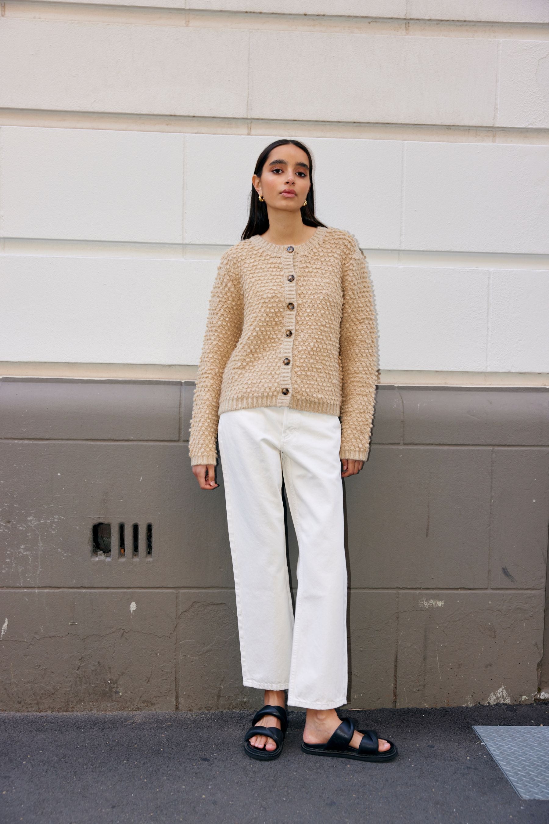 The button-up detailing offers a classic touch, allowing you to wear it fully buttoned for a polished look or undone for a more laid-back, relaxed vibe. In a timeless natural colorway, this cardi is incredibly versatile, easily pairing with both casual and more dressed-up outfits.