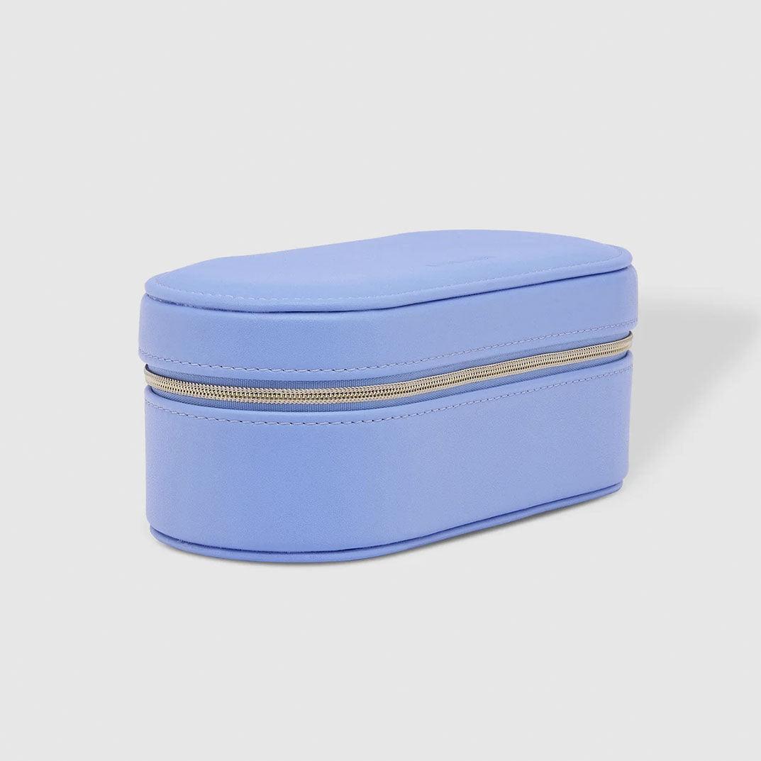 The Louenhide Charlee Chambray Jewellery Box is a medium sized, oblong jewellery case that will house your favourite pieces while you're travelling or at home. Featuring a smooth vegan leather exterior in bright and contrasting colourways, this travel jewellery case boasts ample room to organise all your jewellery in one place. Thoughtfully designed with two ring rolls to securely store your rings and earrings, two compartments for larger statement pieces and a small mirror that allows you to get ready while you're on the go.