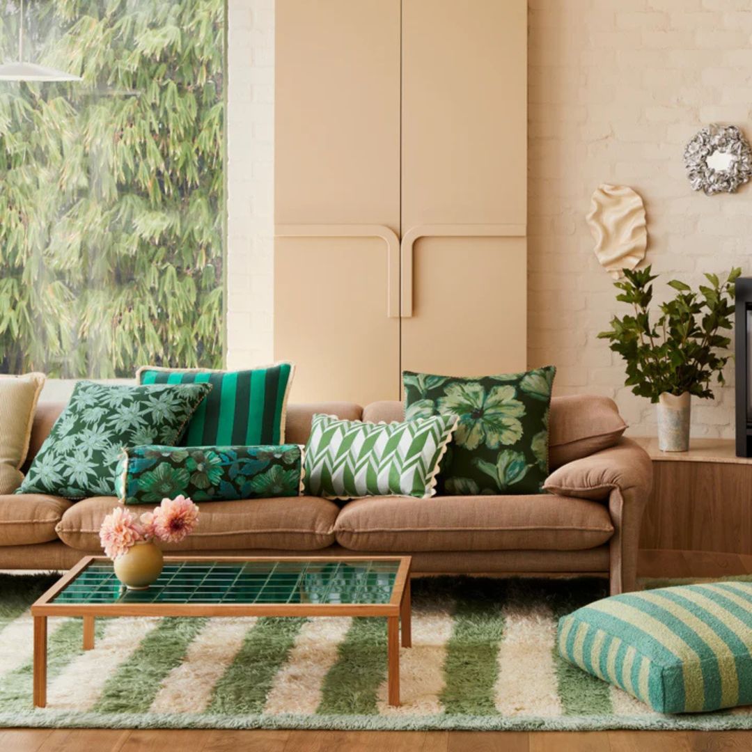 Immerse yourself in the rich beauty of our Tulip Forest Cushion, where deep green tones set the stage for a captivating floral display. The fluid watercolour strokes bring parrot tulips to life, celebrating their dramatic ruffled petals with an artistic touch. This moody yet sophisticated cushion adds depth and elegance to your living room. Style this green floral cushion with plush textures to enhance the luxurious feel.