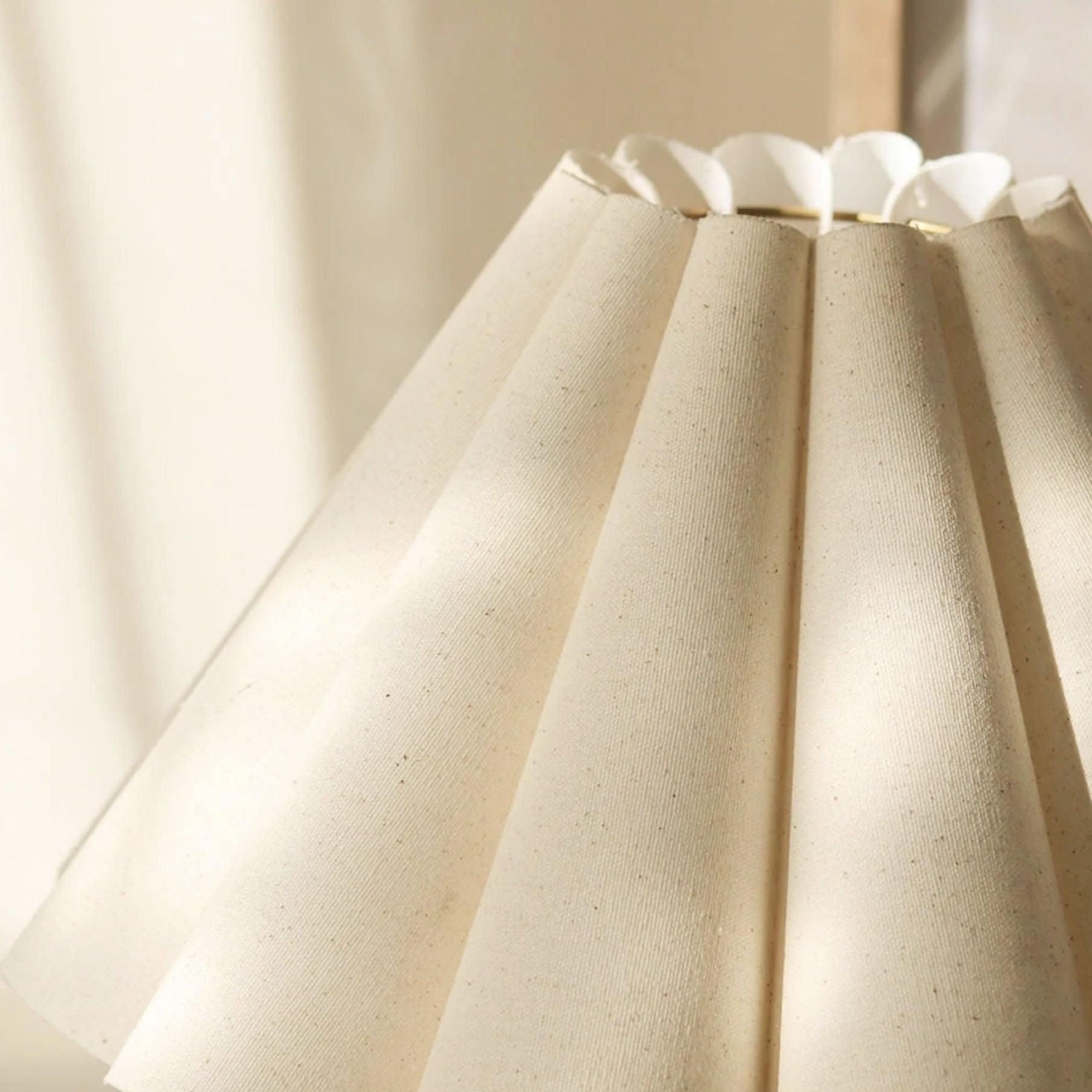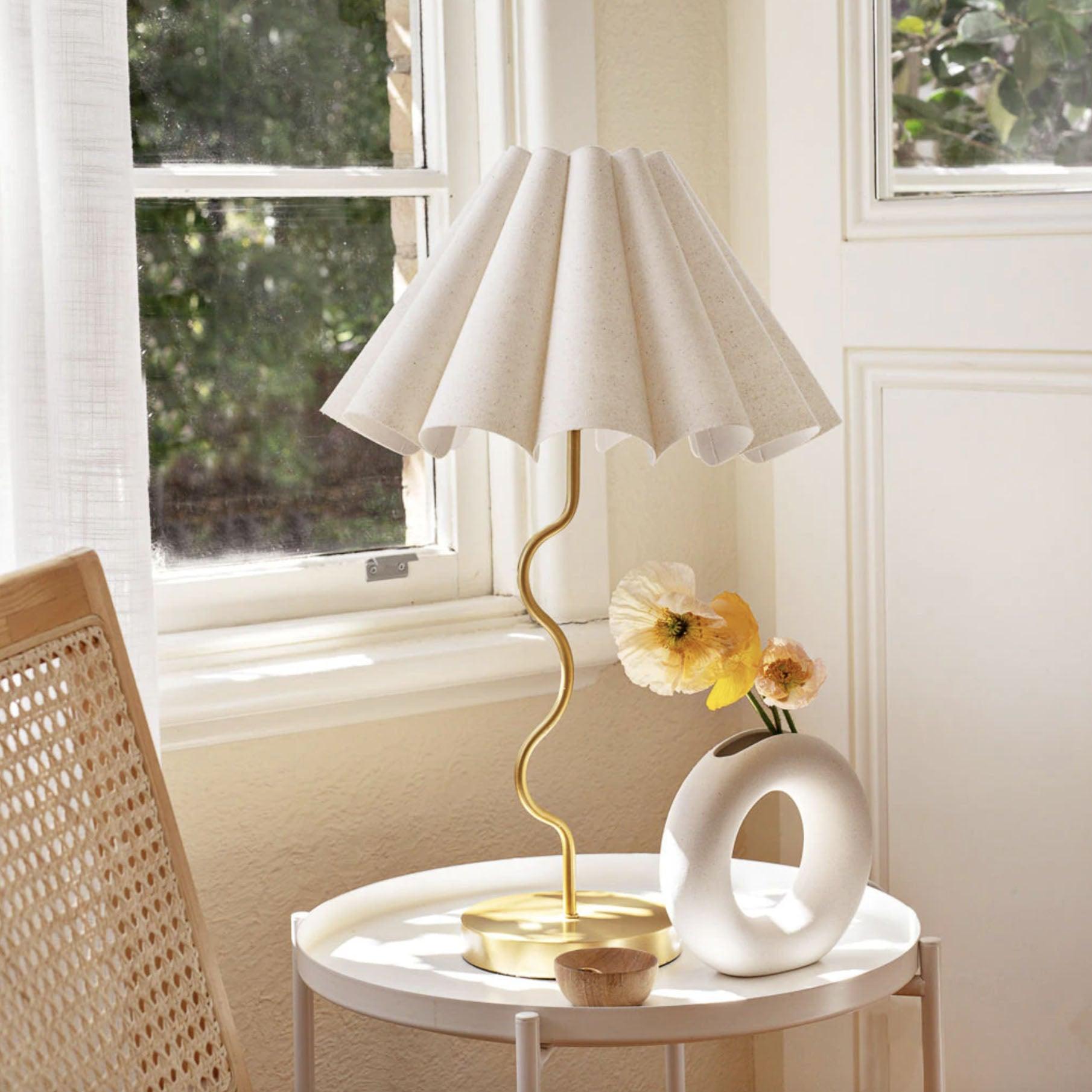 Make a statement on your bedside with our beautiful vintage inspired linen fluted lampshade and brass plated squiggly base.