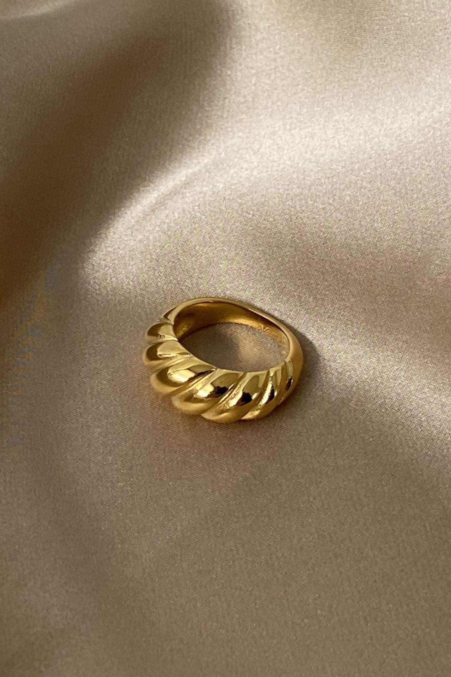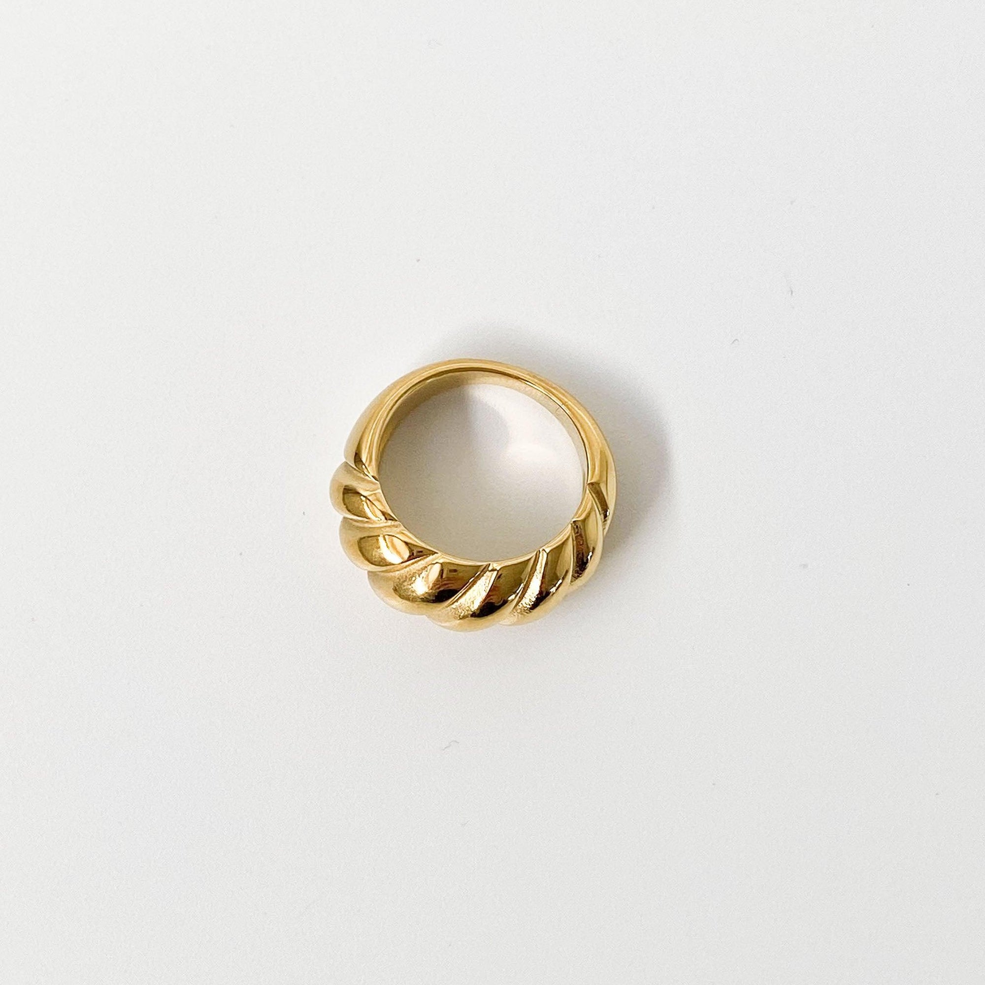 The Croissant Ring in Gold will become your go-to everyday accessory! The Croissant Ring is plated with 14 kt gold and a sterling silver base. Consider this croissant-inspired ring to make all your Parisian dreams come true.