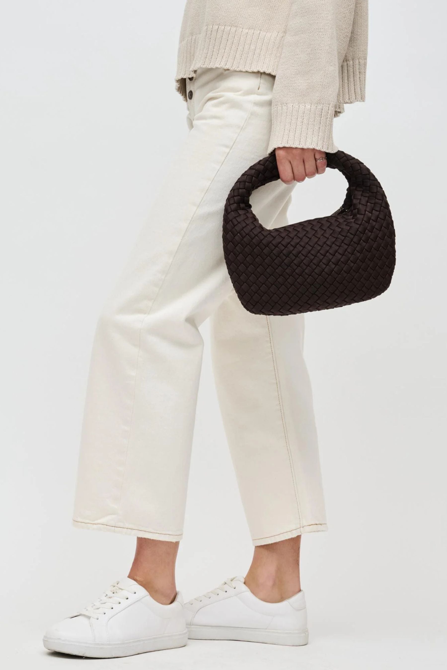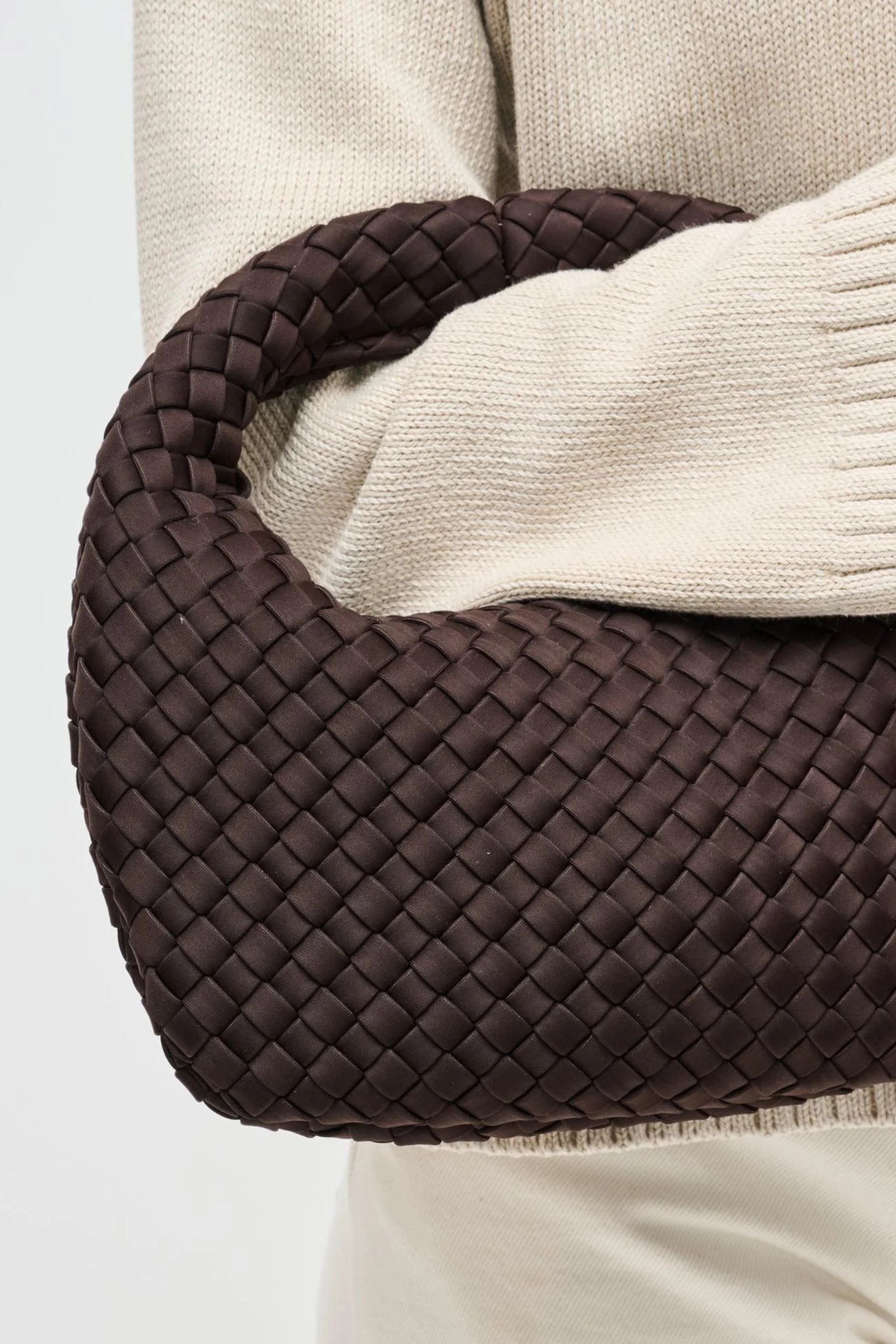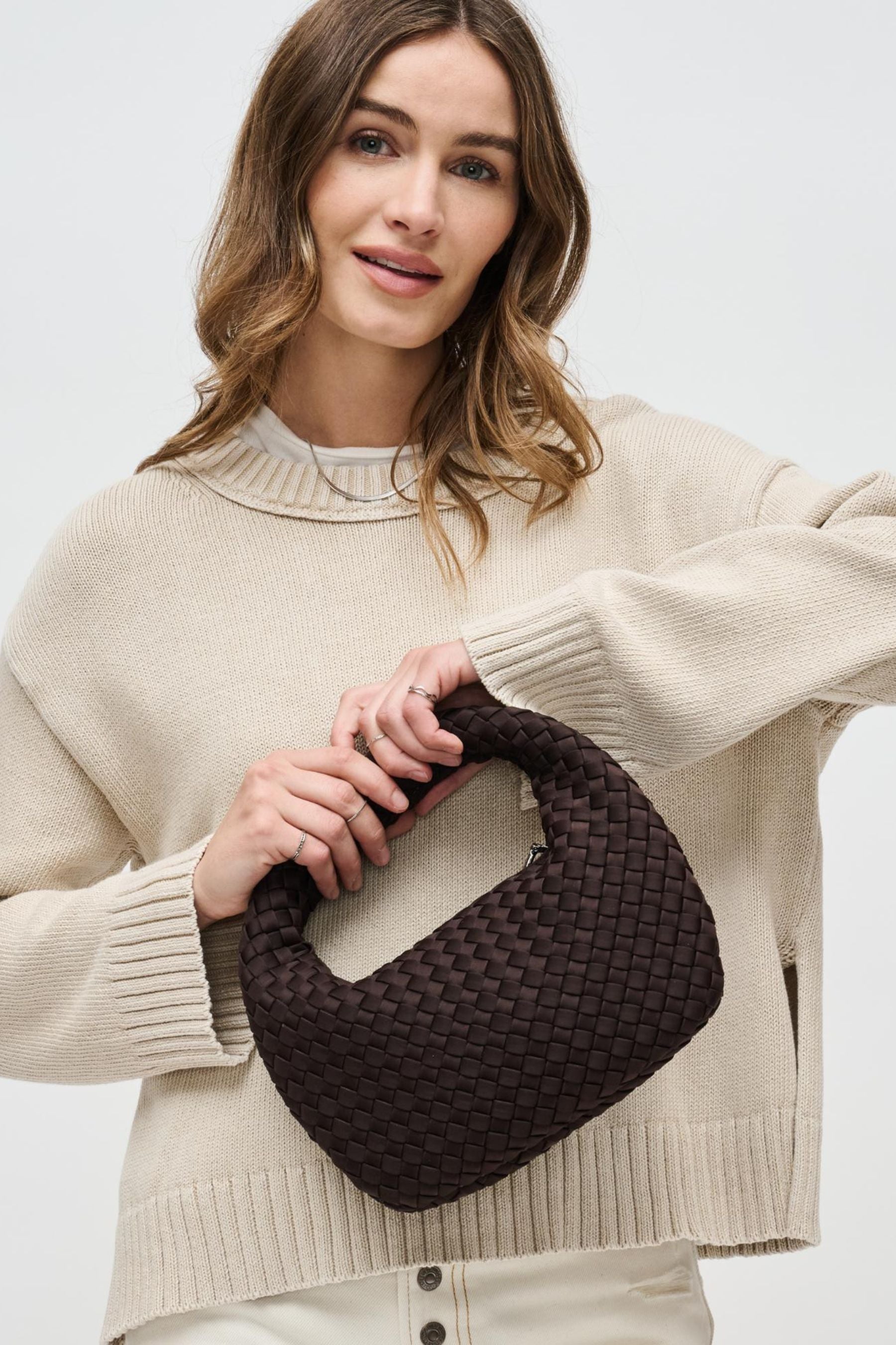 Meet your new day to night bag made from woven Neoprene. Its sleek zipper closure and gold hardware add a touch of elegance to this versatile piece. Perfect for a night out or a stylish day in the city.