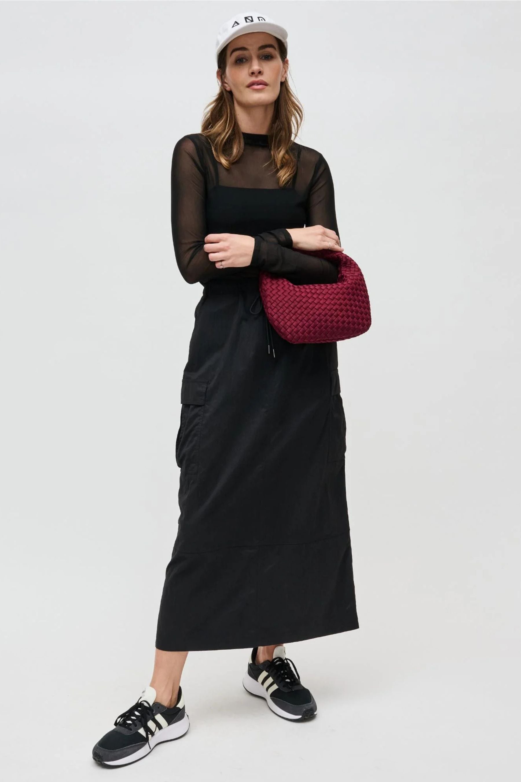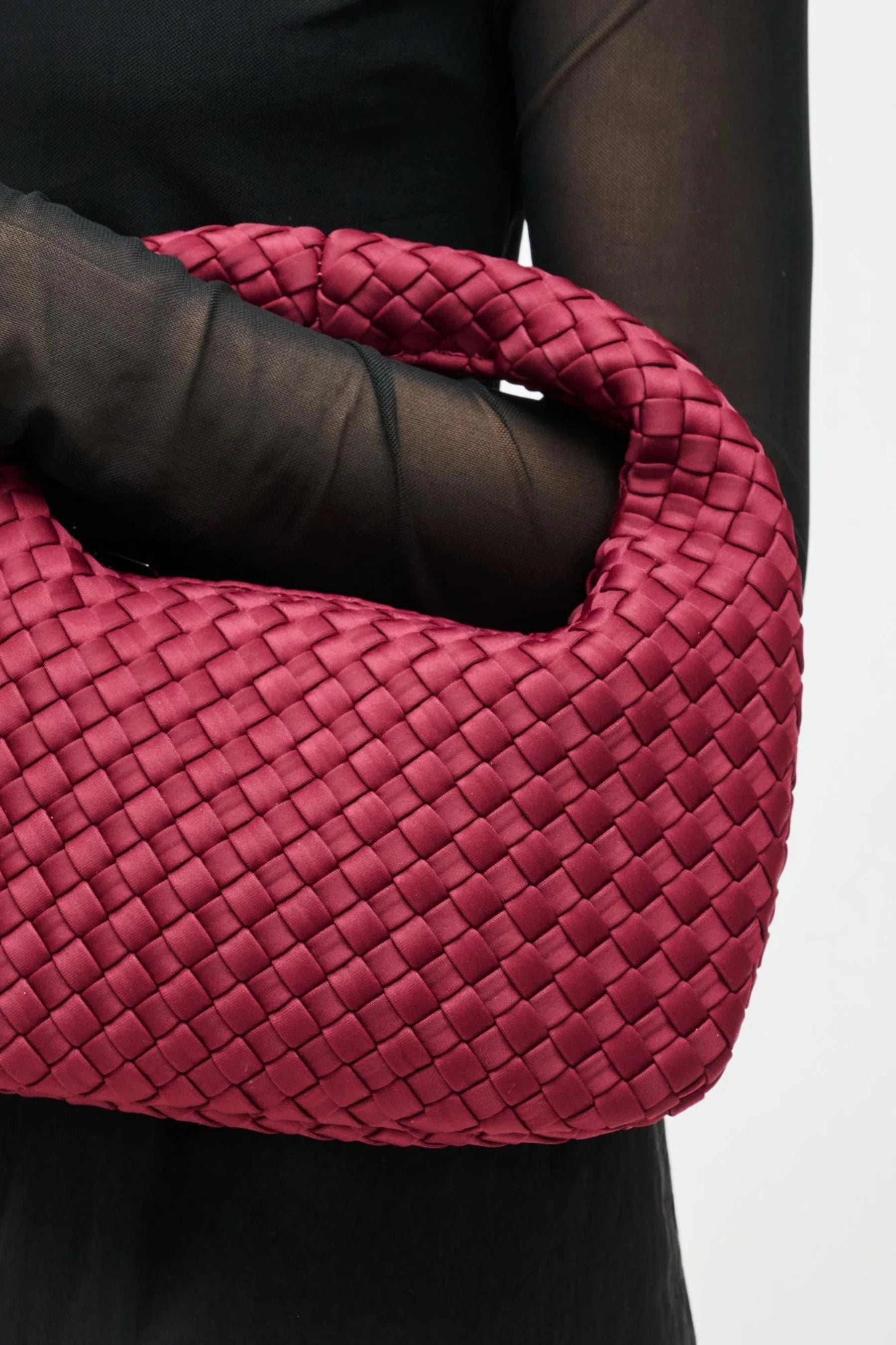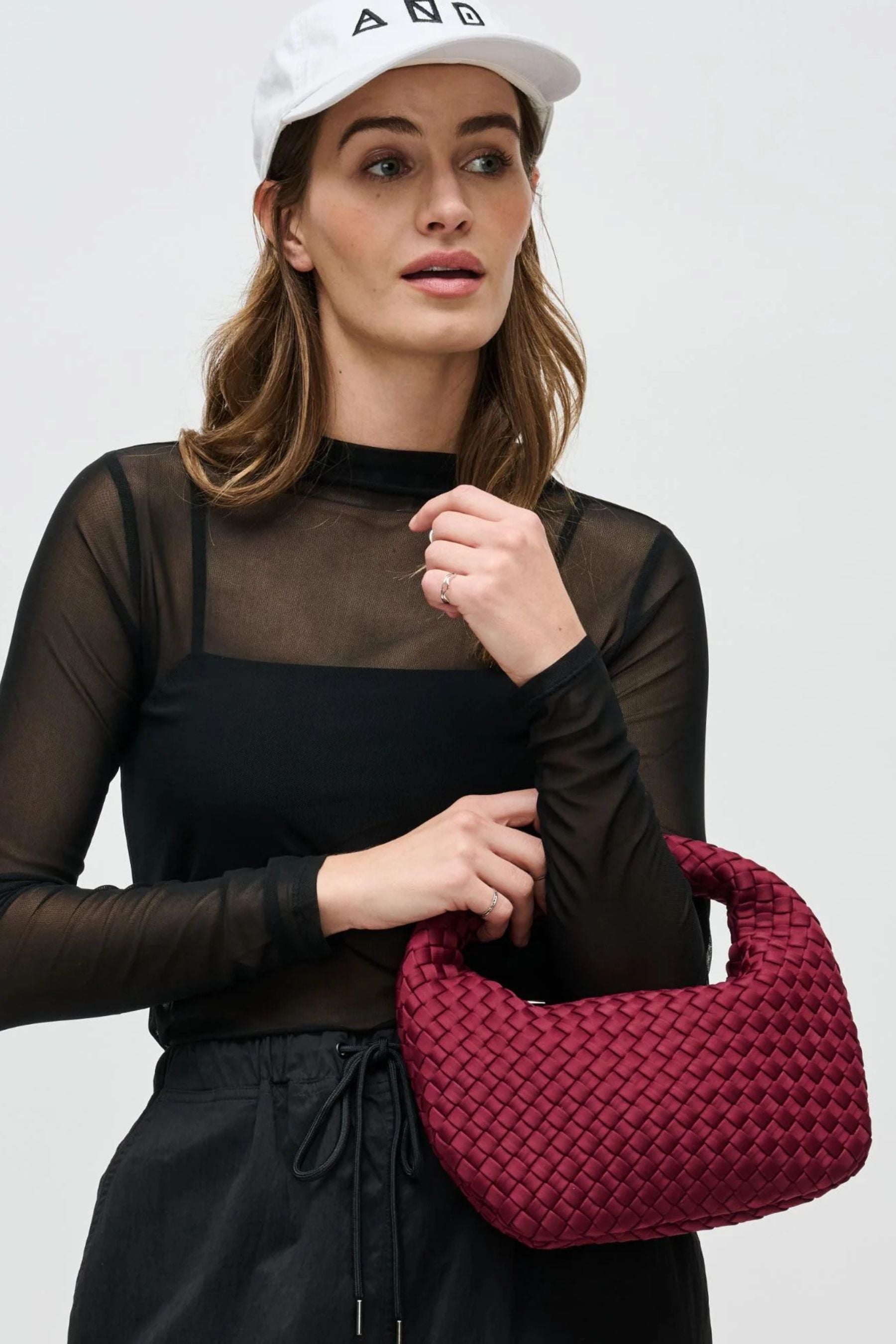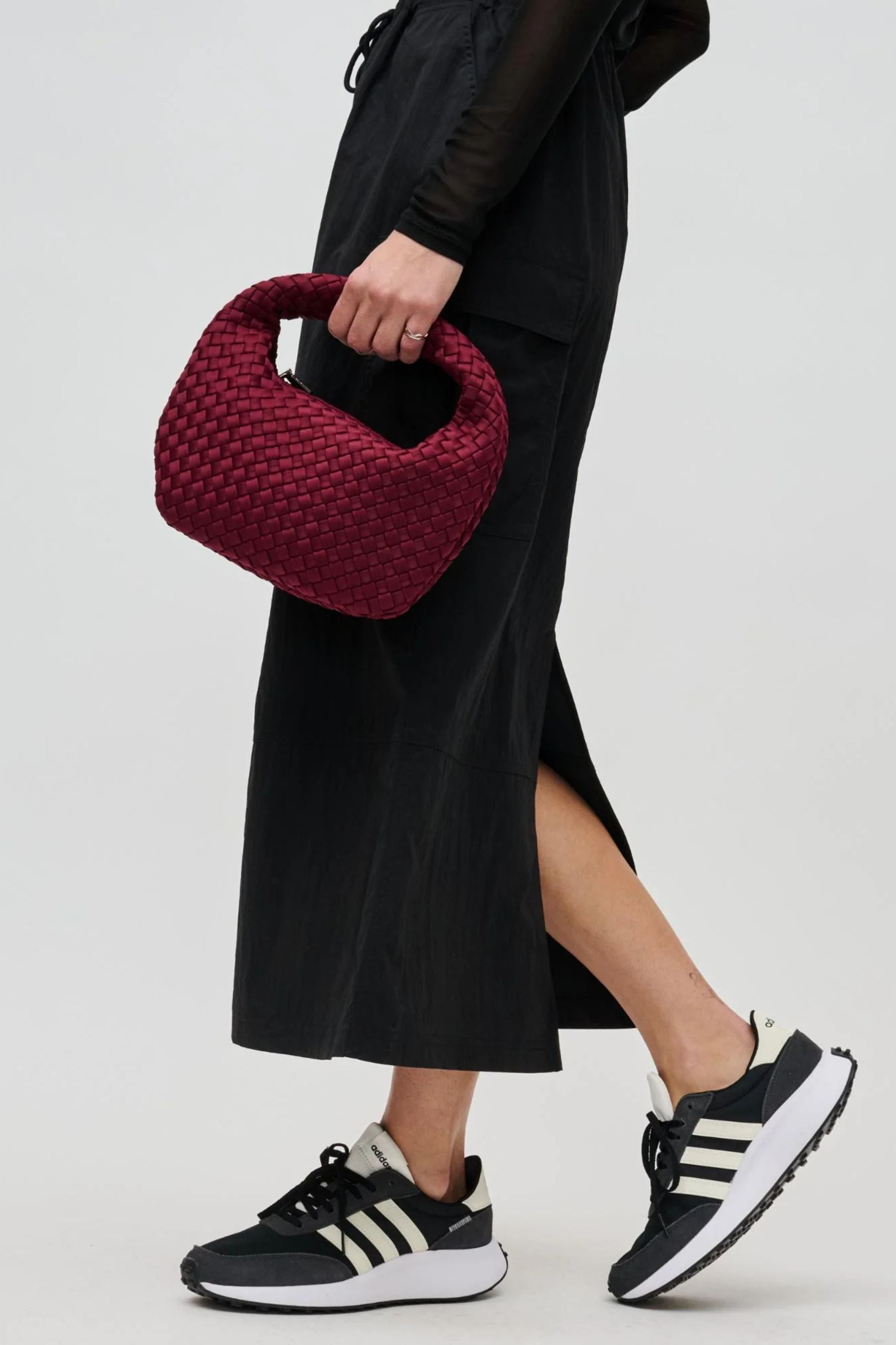Meet your new day to night bag made from woven Neoprene. Its sleek zipper closure and gold hardware add a touch of elegance to this versatile piece. Perfect for a night out or a stylish day in the city.