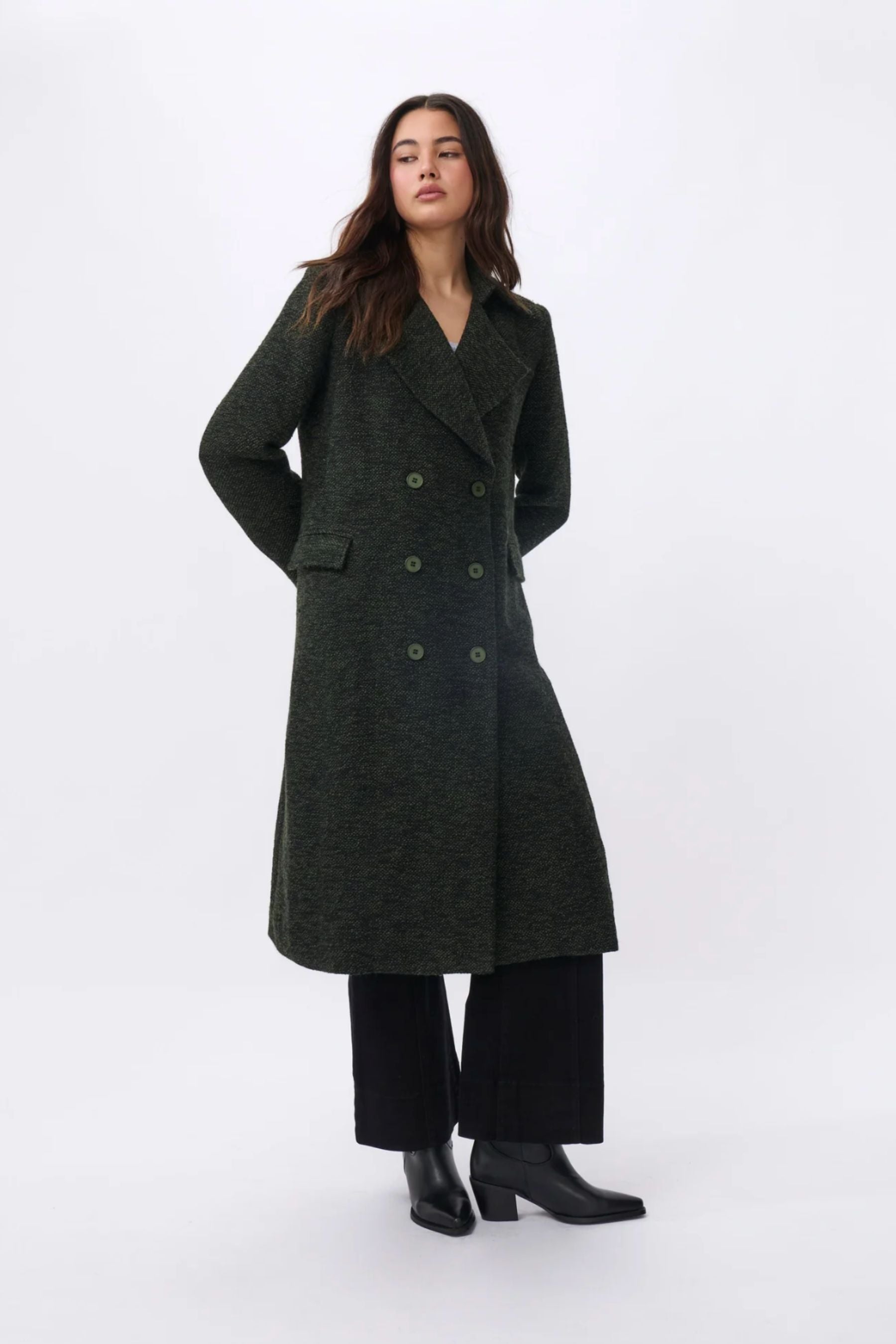 From watching winter sport to those extra chilly workdays the Etta Double Breasted Coat is the most stylish way to keep cozy. With a classic double-breasted design, this stylish coat is made from a unique brocade and features a tonal lining and welt pockets with flap closure.