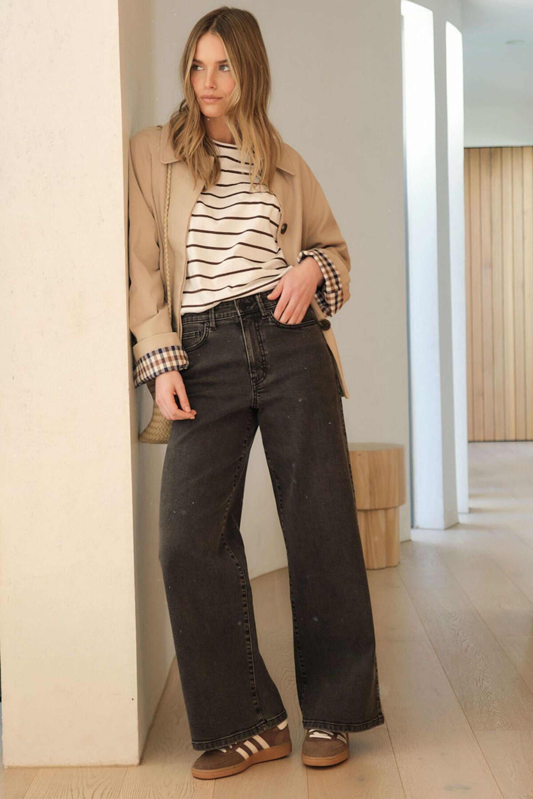 Our wide leg jean is a modern take on a denim classic & is bound to be a wardrobe favourite. Designed to flatter, this waist hugging style skims over your hips whilst the wide leg elongates your silhouette and elevates your everyday look.