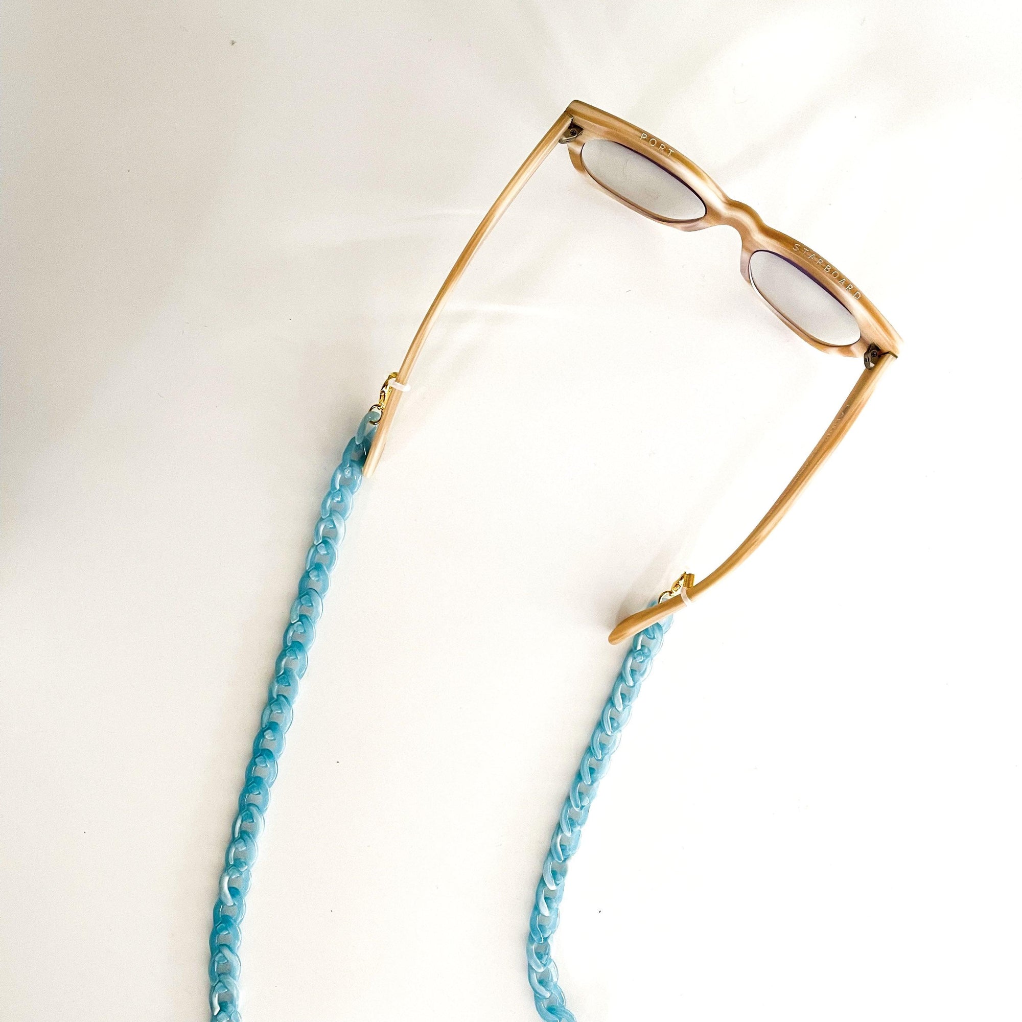 Add something extra with the acrylic eyewear chain that adds a touch of luxe to your sunnies & reading glasses. It featured detachable custom grips in clear and black. It can also be hooked onto masks and doubles as a strap when you're not using it.