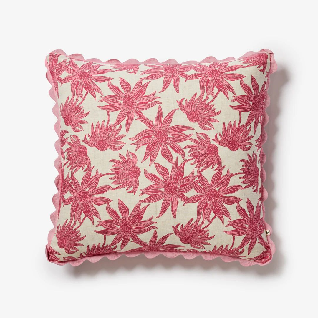 Inspired by the delicate beauty of Australian flannel flowers, our Flannel Flower Pink cushion brings a sense of warmth and sophistication to your space. The intricate relief-style detailing, reminiscent of traditional woodcutting techniques, highlights the striking floral design, creating an organic yet structured aesthetic. Perfect for layering on a neutral-toned sofa or pairing with rich hues of cerise, burgundy or hazelnut, this pink floral cushion adds a soft yet confident statement to any interior.