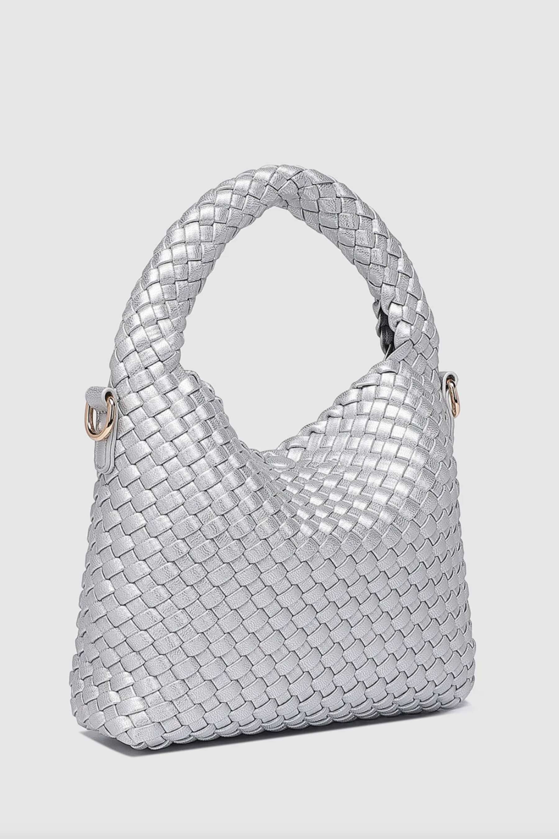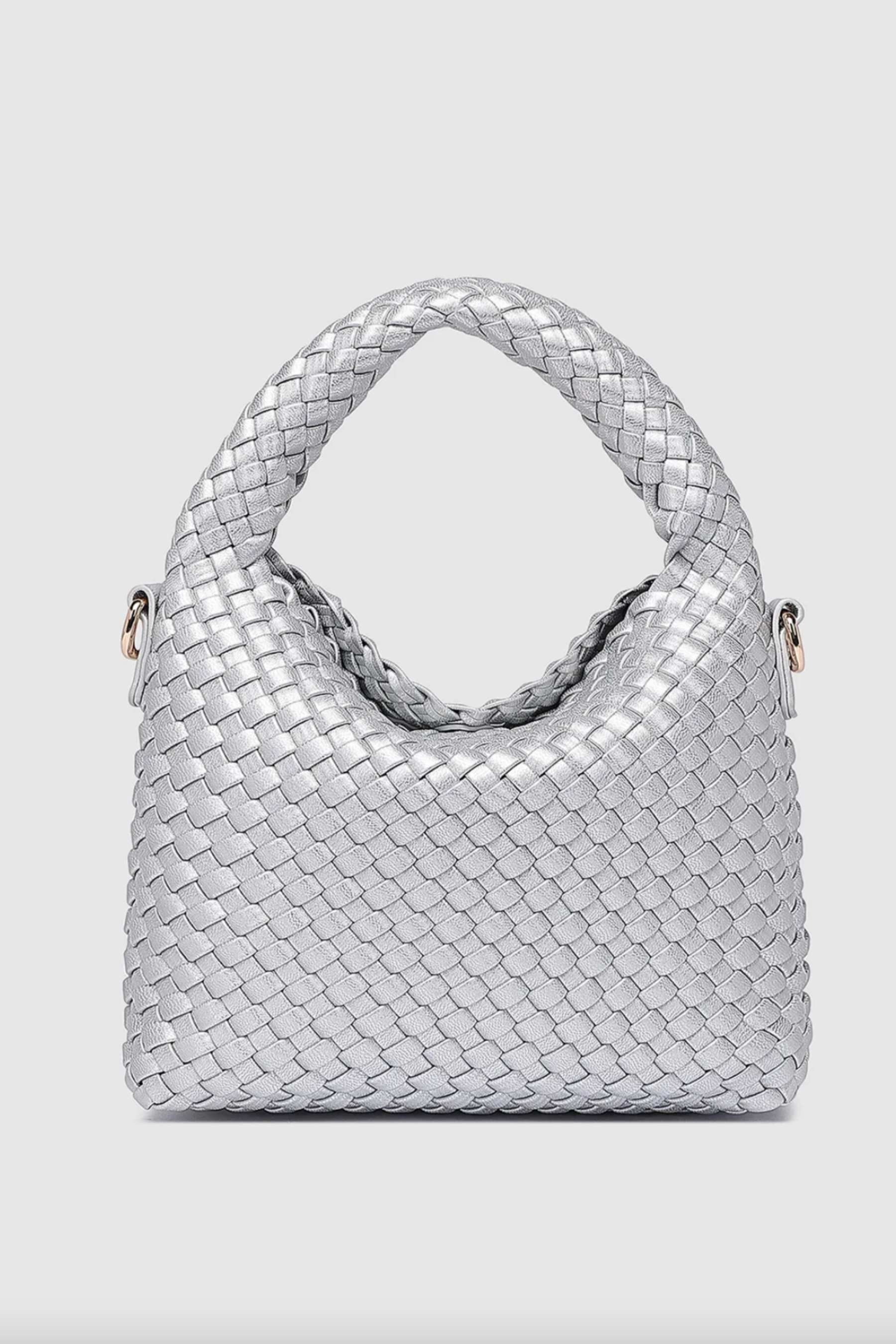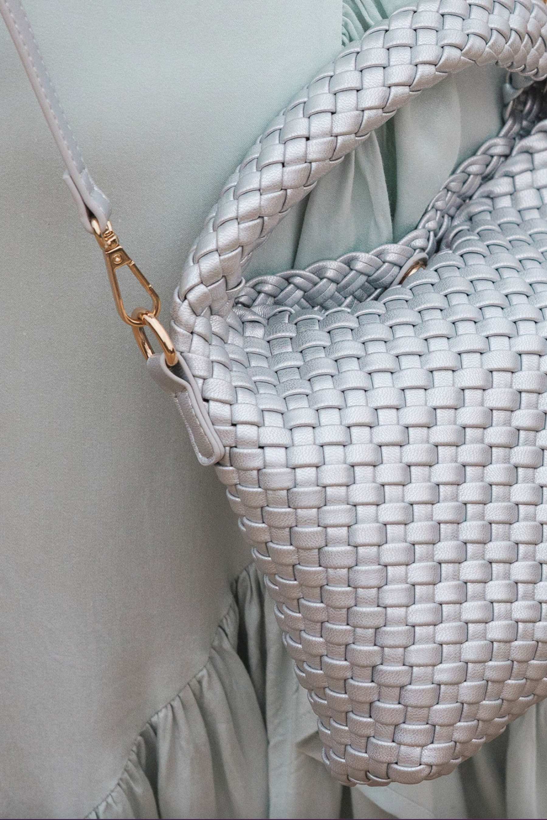The Louenhide Gabby Silver Mini Crossbody Bag brings a fresh perspective to summer accessorising. To elevate a past season favourite, The Gabby, this women’s soft mini handbag will add the perfect touch of texture to your capsule wardrobe. It’s all about versatility, with its detachable extension strap to easily transition from a top handle carry to a classic crossbody, adapting to your style needs with ease. Whether you’re exploring a new city or enjoying a leisurely seaside stroll, this women’s mini woven crossbody bag moves with you. Made with enough space to carry your essentials while maintaining its sleek profile — the Gabby Mini is an ideal choice for any warm-weather adventure.