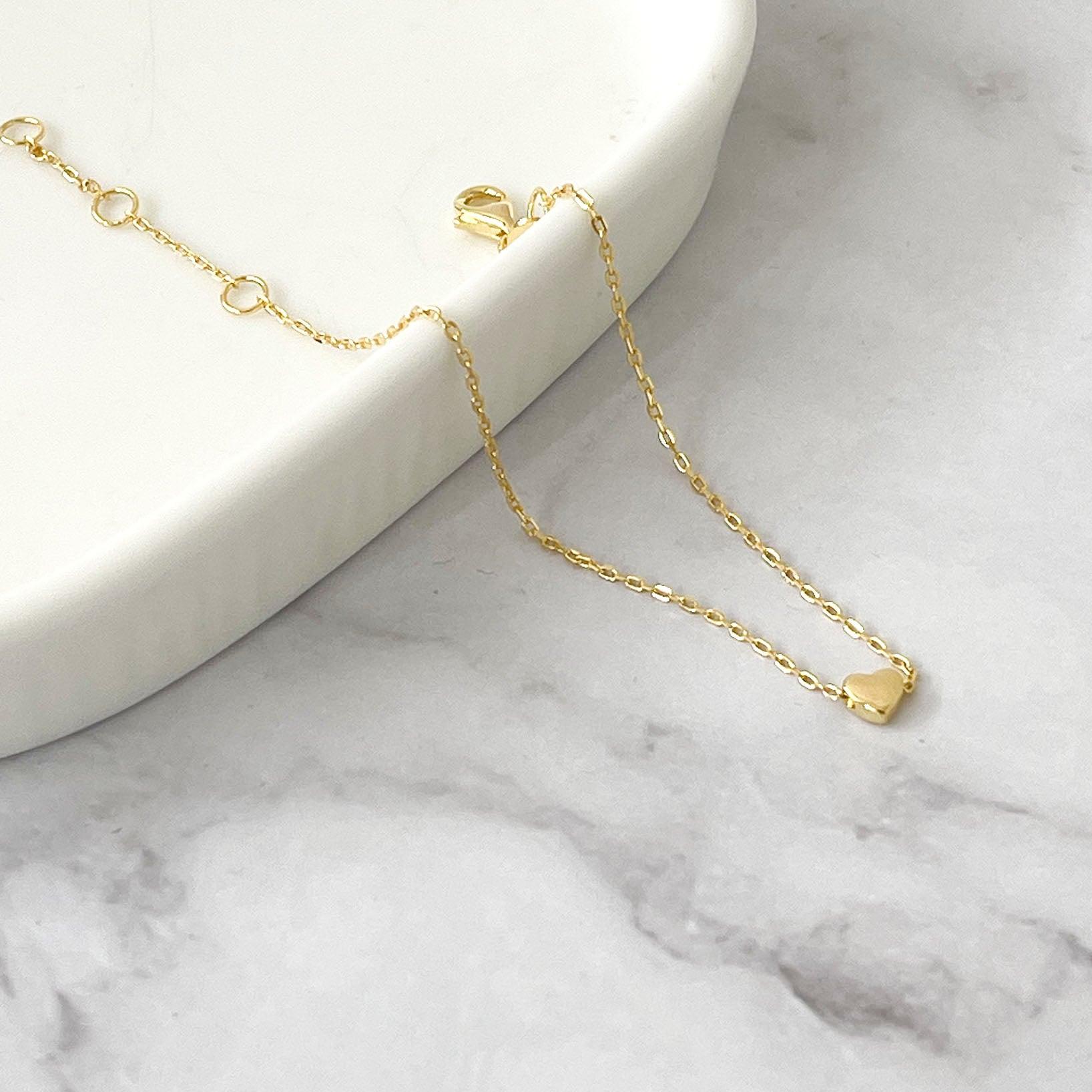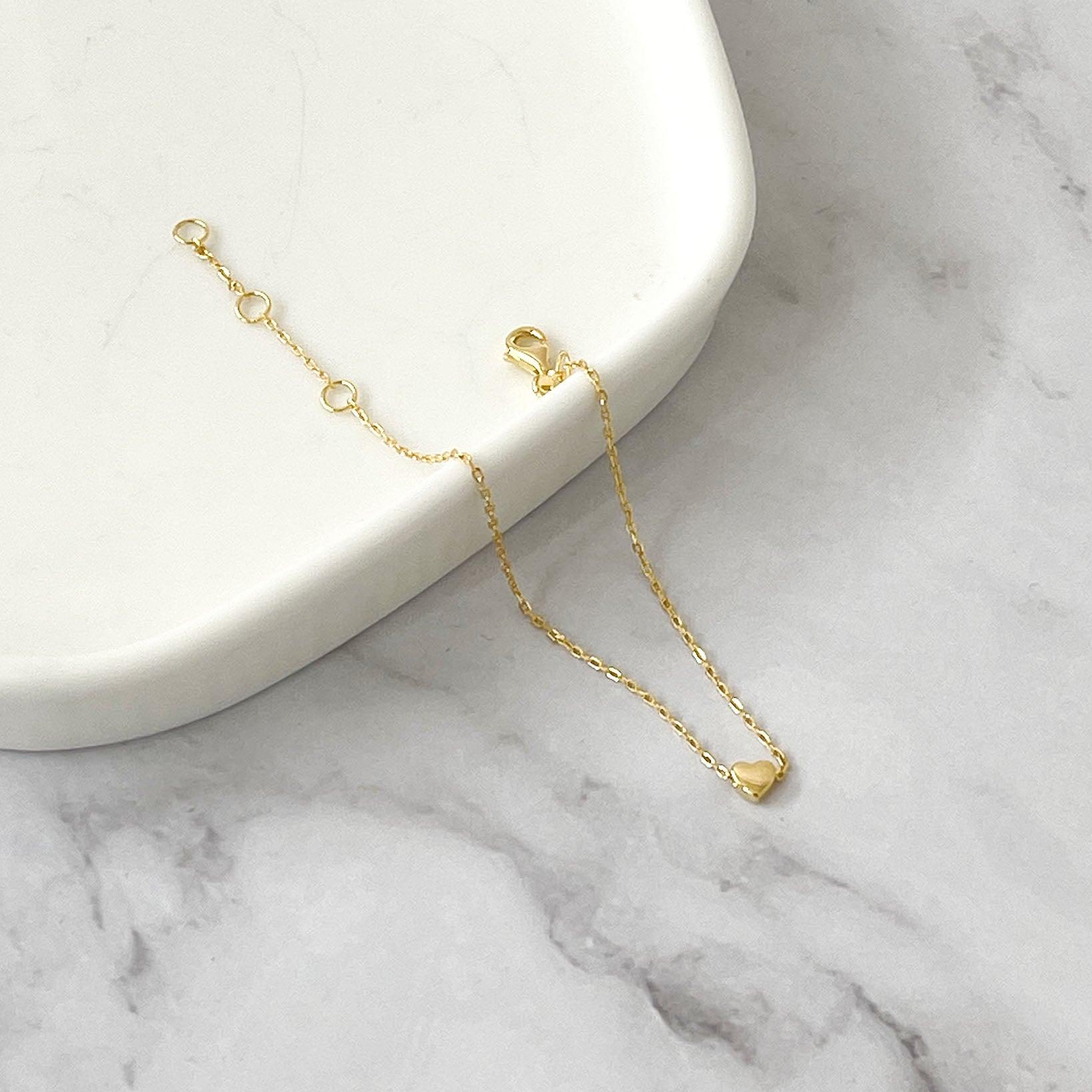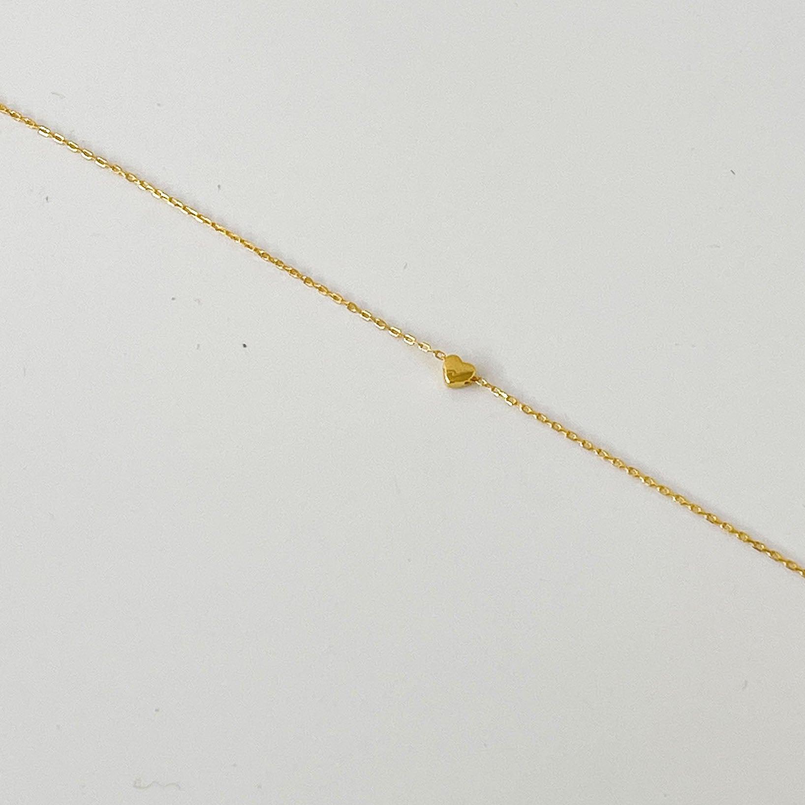 This bracelet features a detailed miniature heart pendant on a delicate gold chain