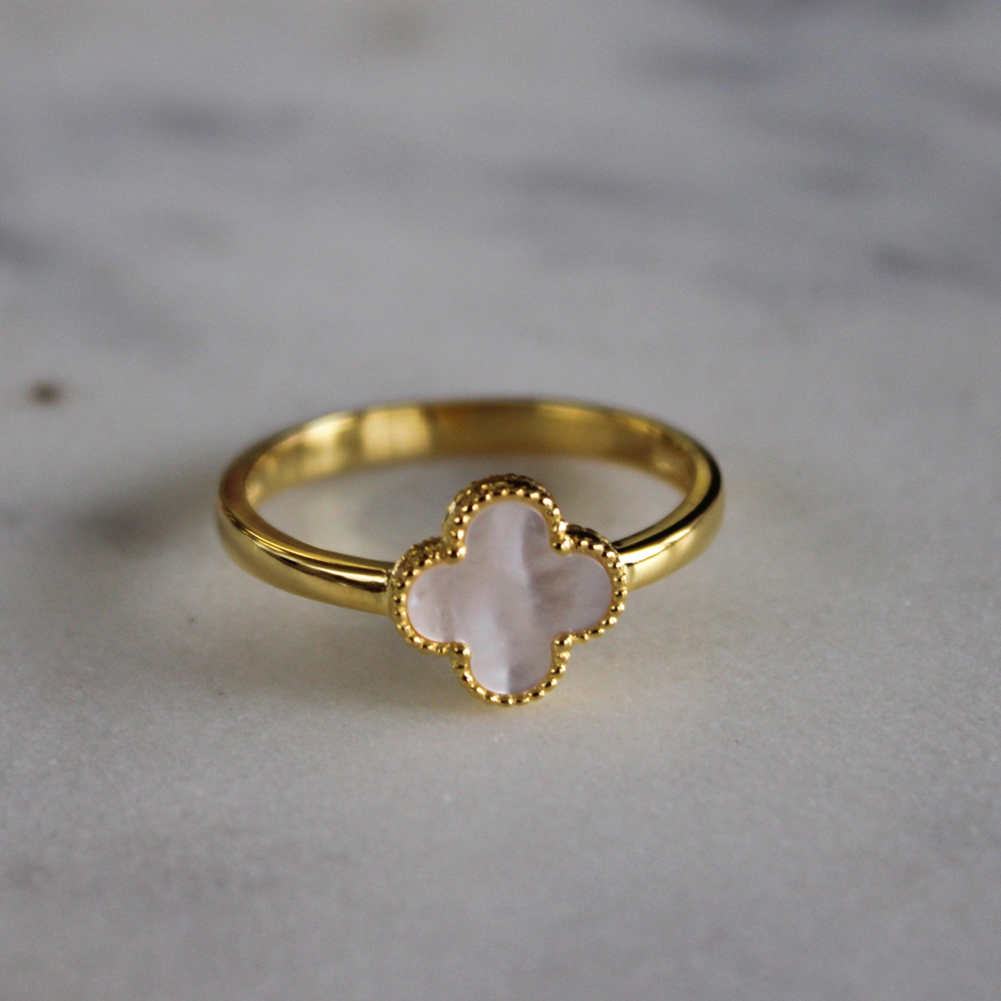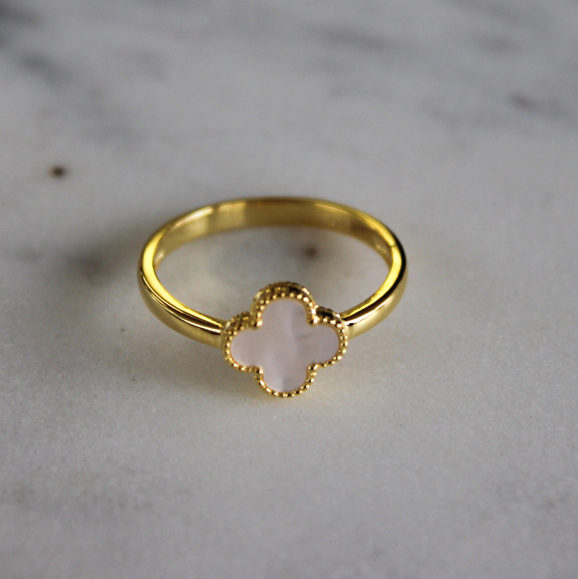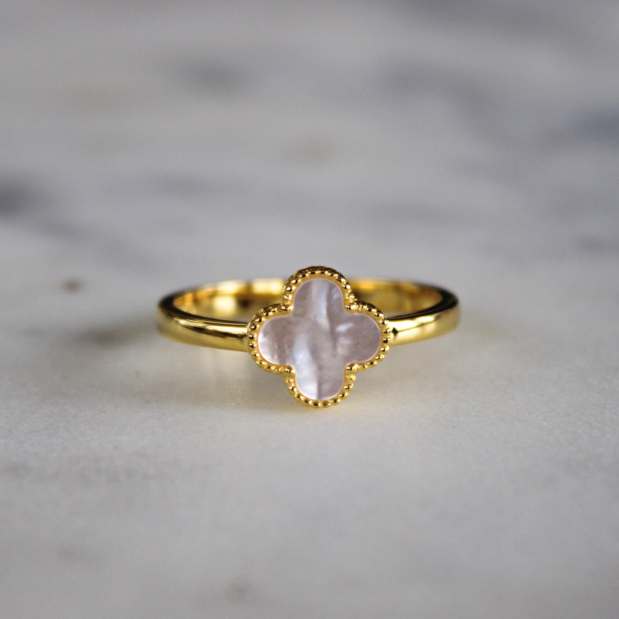 Gold Plate Ring with Mother Of Pearl Clover Shape