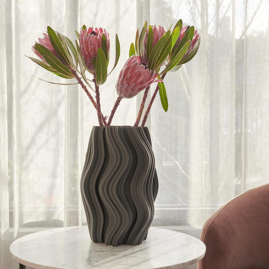 Our collection of vases combines both cutting-edge 3D printing technology as well as individual craftsmanship involved in the creation of each vase. Because of this process, slight variations in shape and finish may occur. These variations are a testament to the artisanal nature of the production process, making each Harper vase a truly one-of-a-kind piece. You can take pride in owning a vase that carries the marks of the artisans' handiwork, showcasing its individuality and uniqueness.