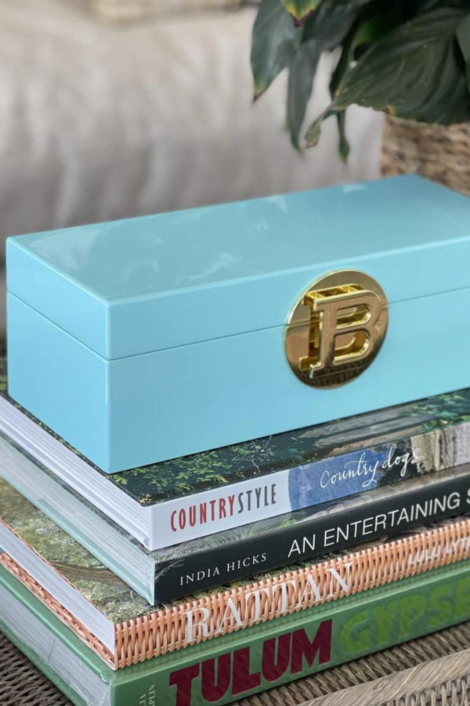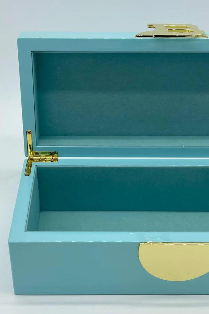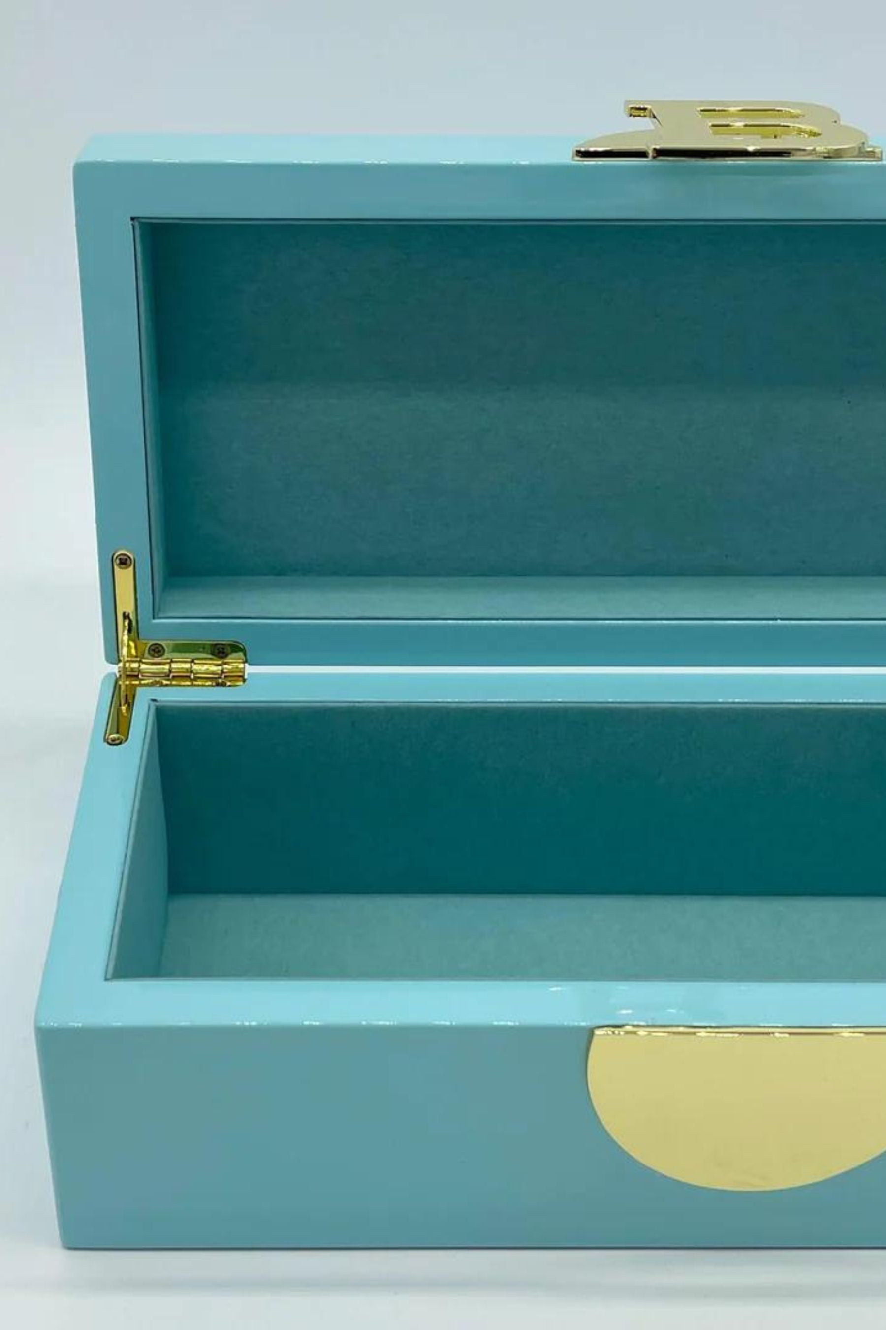 These lacquered boxes are the perfect for everybody. Available in white, navy and turquoise and lined in beautiful matching velvet, these are the perfect gift .....for yourself or for someone special. The stunning gold initial clasp means they are a highly personalised gift. They are ideal for storing special bits and pieces, or even hiding the remotes on the coffee table!