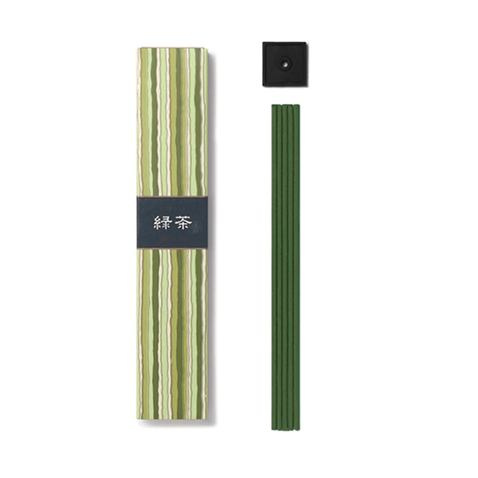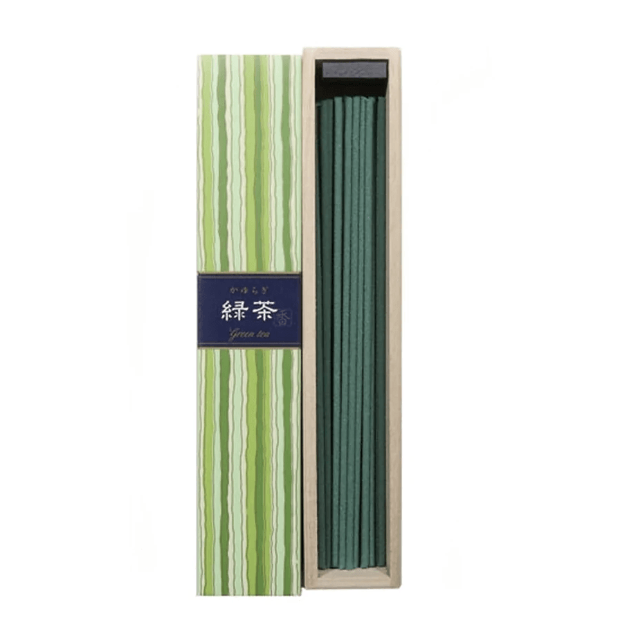 Indulge the senses with Nippon Kodo's Kayuragi, where fragrance "ka" meets with slowly wafting scented smoke "yuragi." Each incense features the smooth and clean note of Japanese green tea. Inspired by Kimono fabric (Japanese traditional wear), the packaging for the Kayuragi collection is smooth with eye catching colouring. Made in Tokyo, Japan using traditional techniques.