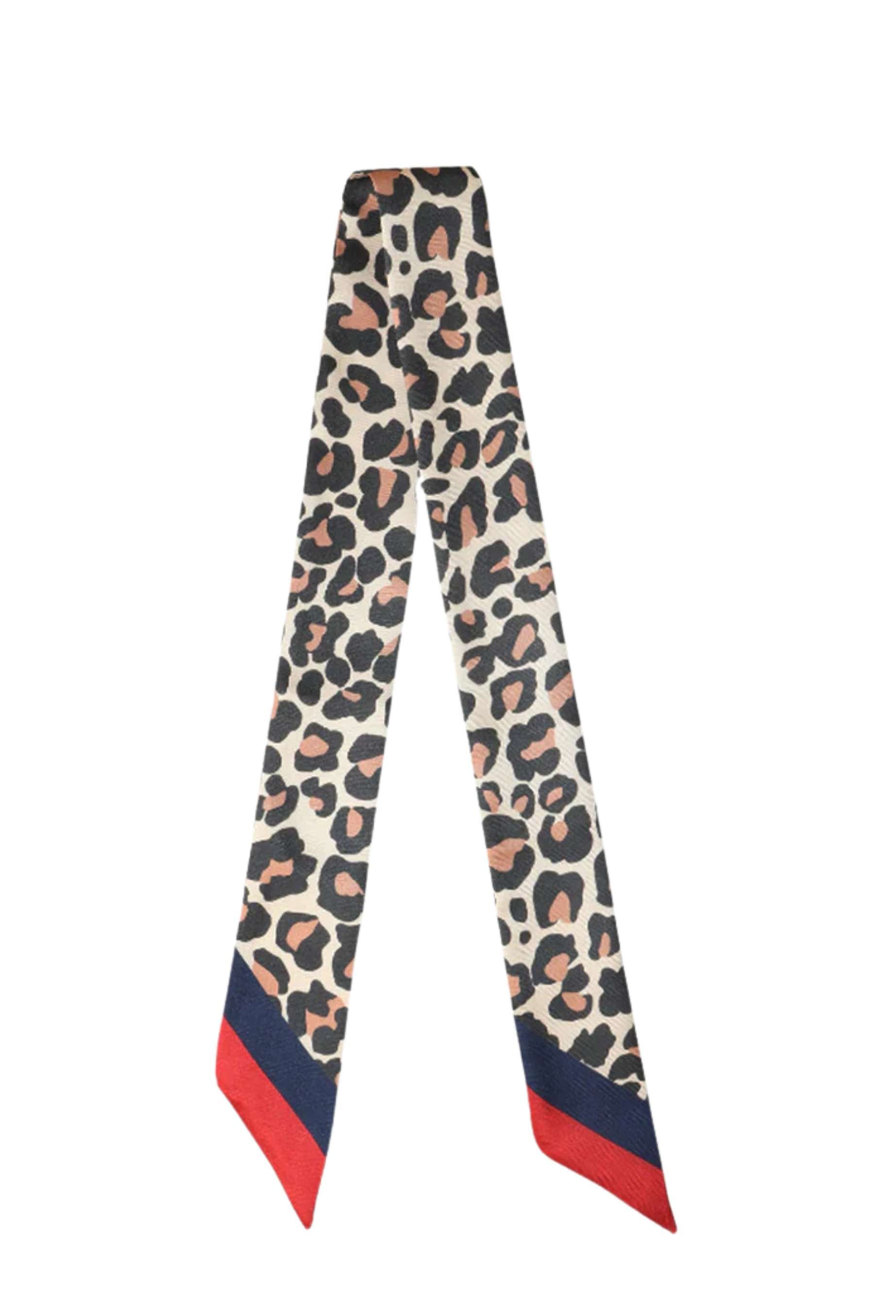 The Leopard Narrow Scarf features an animal print that adds a touch of fun to any look. Its sleek, narrow design makes it perfect for tying around your neck or adding a stylish pop to your bag.