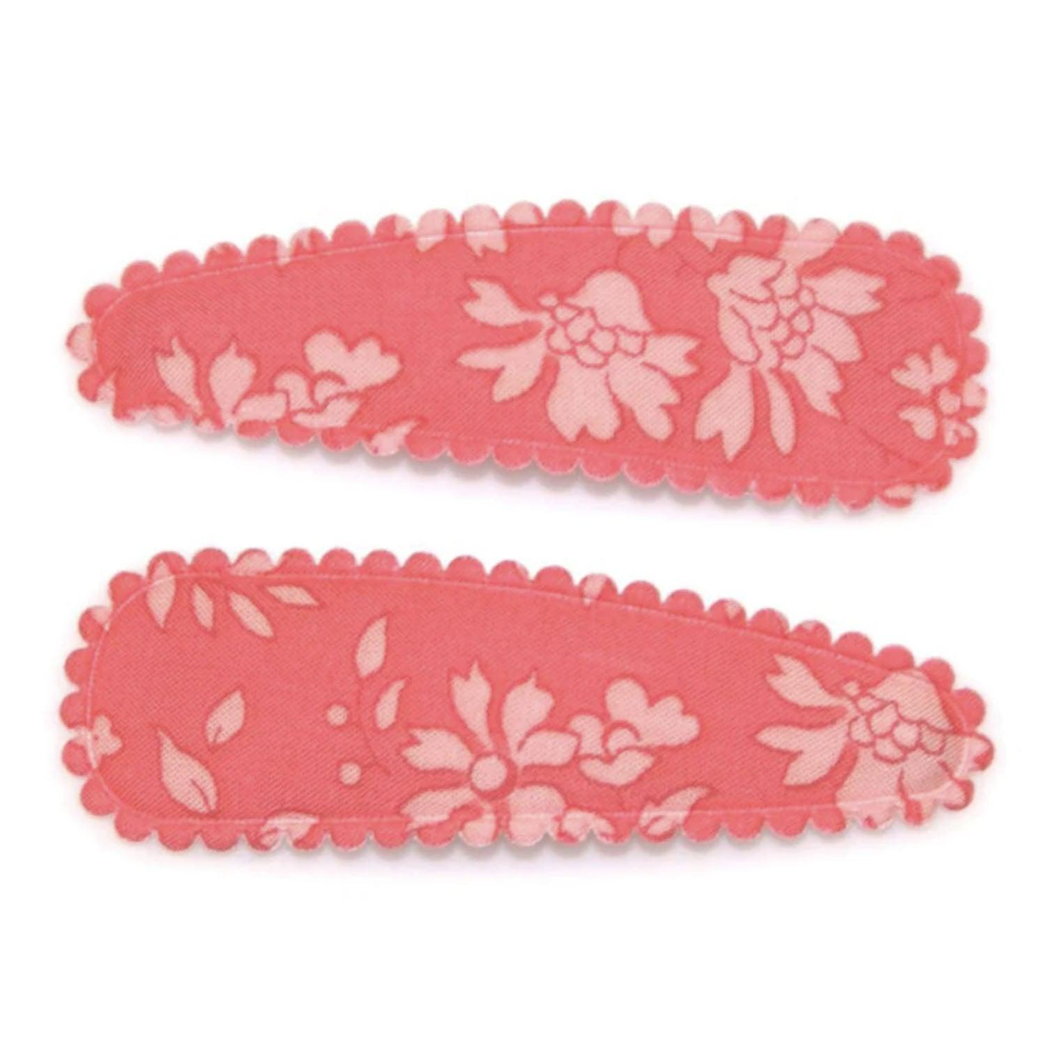 Pair of non-slip hair snaps covered in Liberty Limited Edition Capel Pink fabric.
