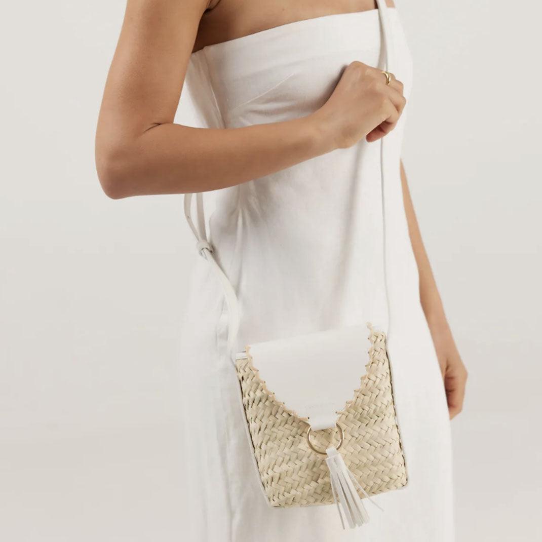 Lila is our mini cross body hand woven palm straw pouch, created in collaboration with our partners, Doum For Women a cooperative in Marrakesh supporting at risk women.