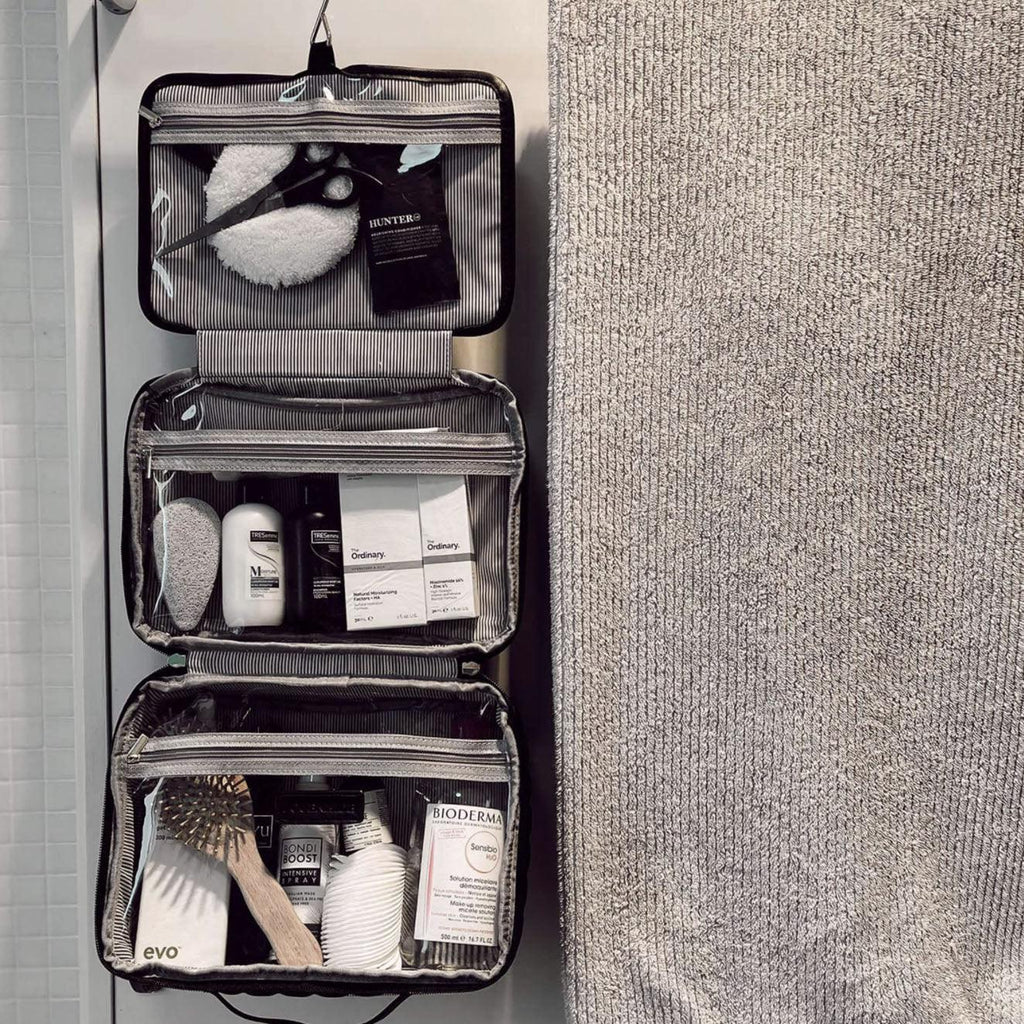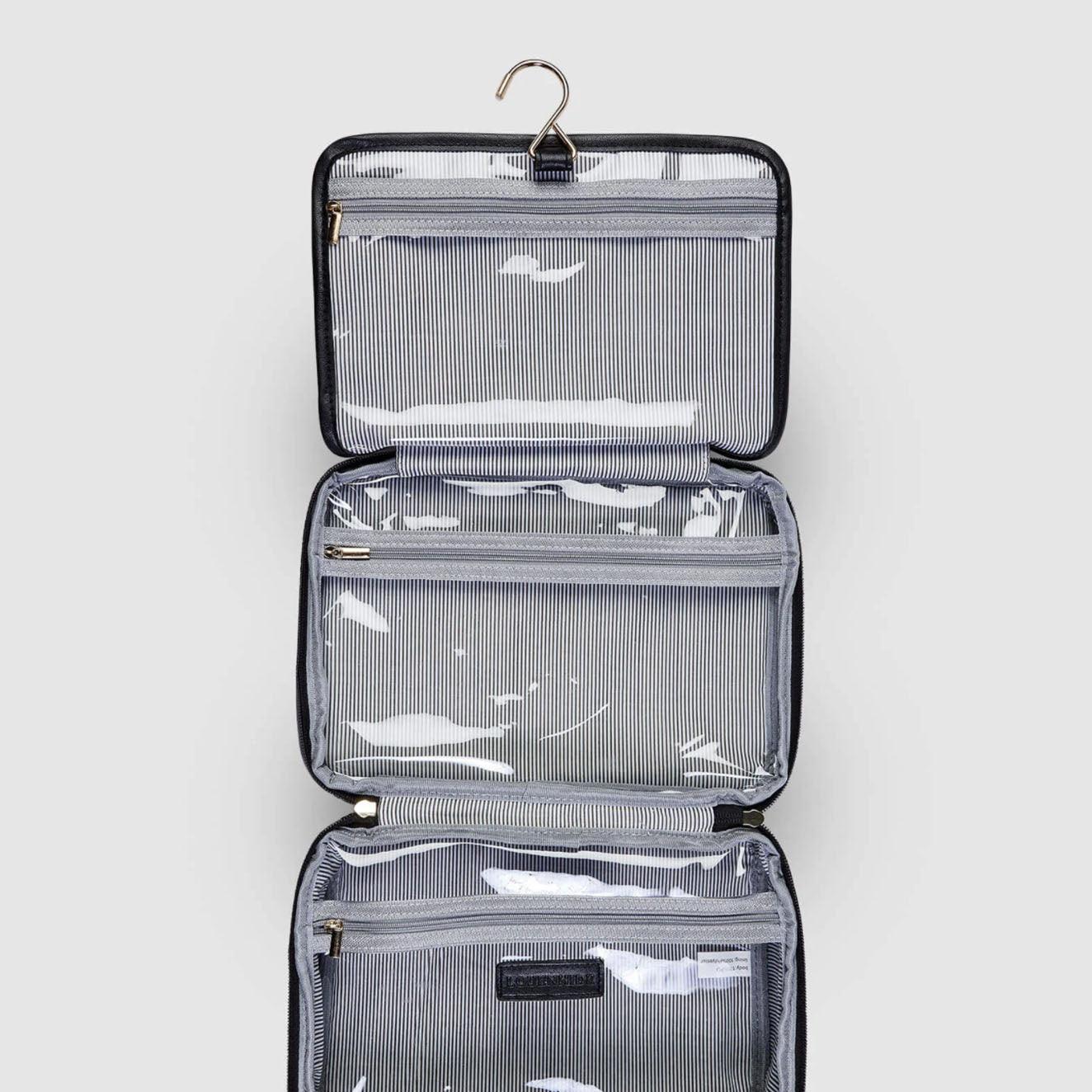 The Louenhide Maggie cosmetic case is a beautiful quilted large makeup bag. Designed to be functional and spacious with three zipped compartments to store you makeup, skincare, and toiletries all in one. Comes with a hanging hook for easy access on the go! Take with you on weekend adventures or around the world!