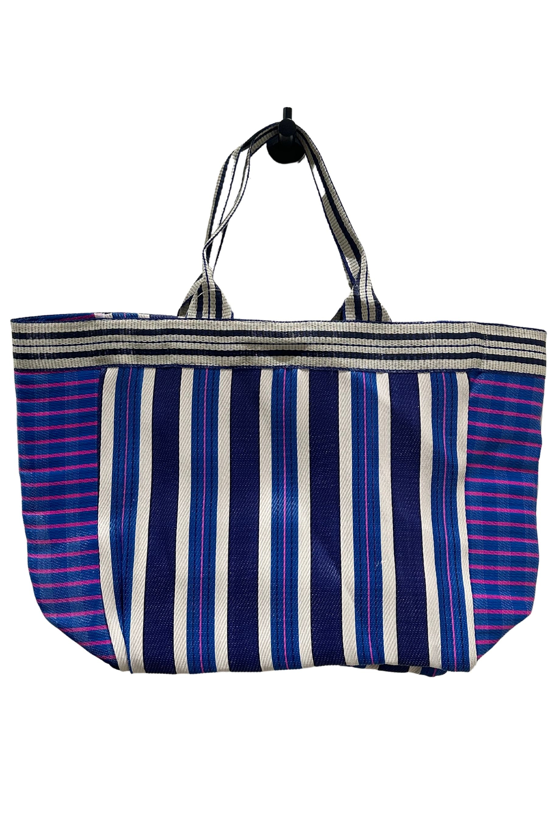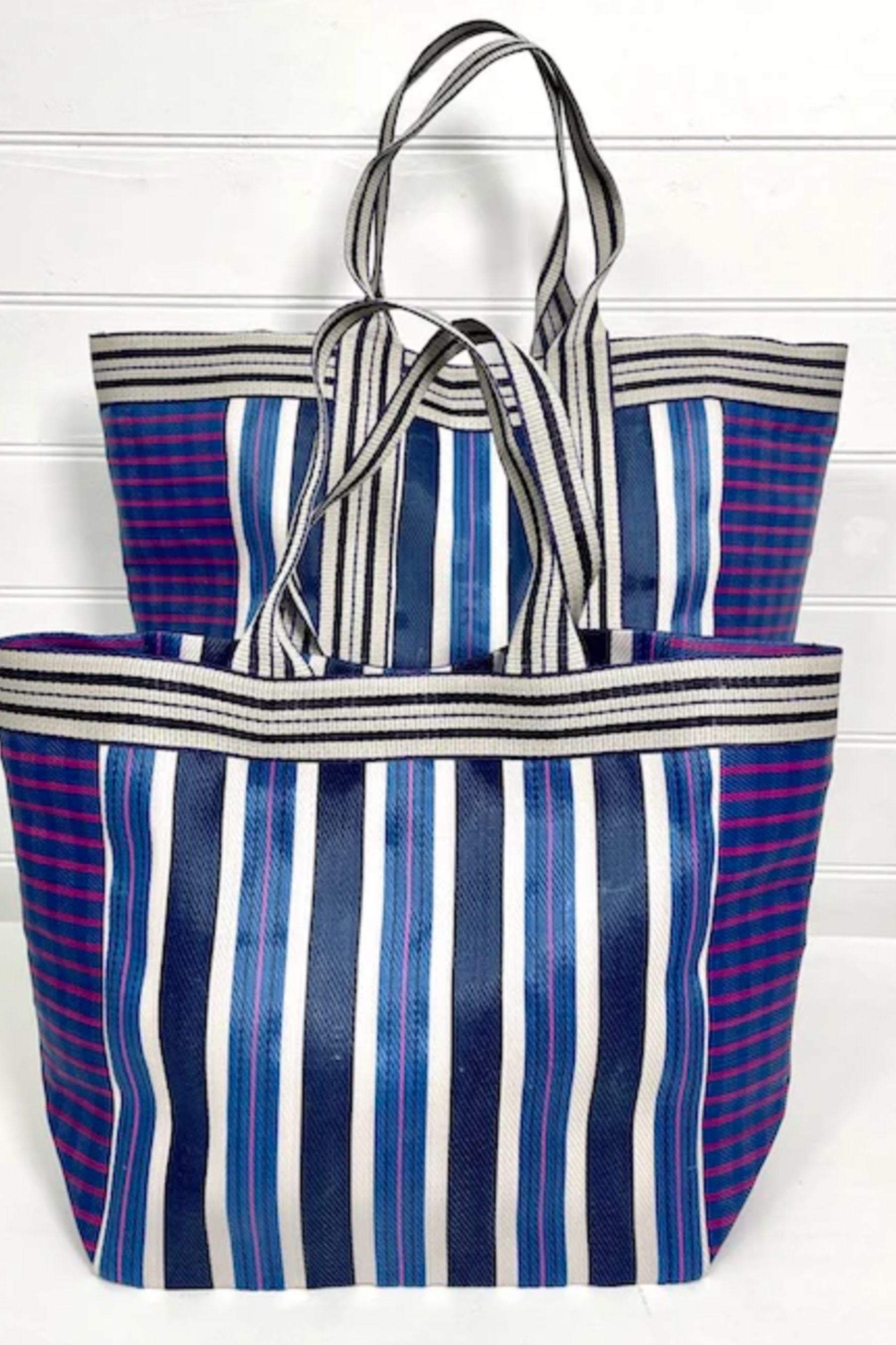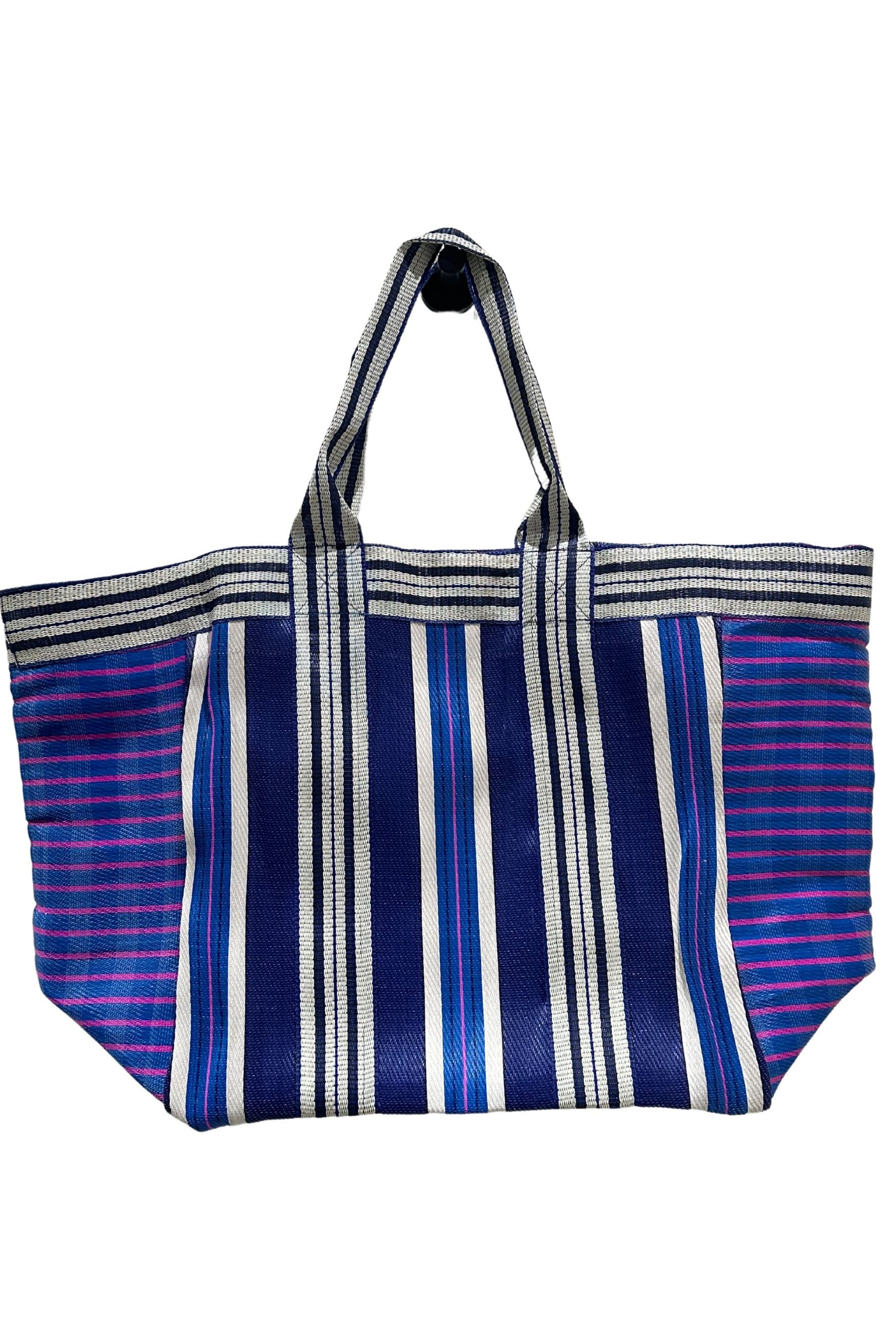 Market Bags are made from RECYCLED Plastics in the boldest bright stripes we could find! Spot this bag a mile off! Strong and waterproof with a pocket for mobile phones and a soft cotton web handle. Made for sunny lazy days on the beach, shopping, or wherever you need to lug a load!