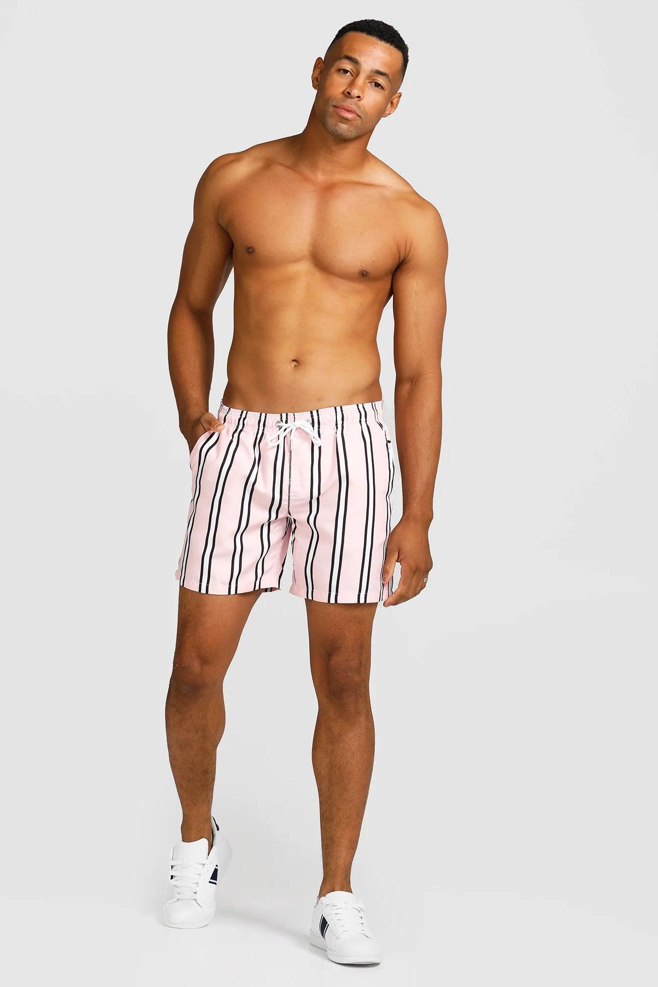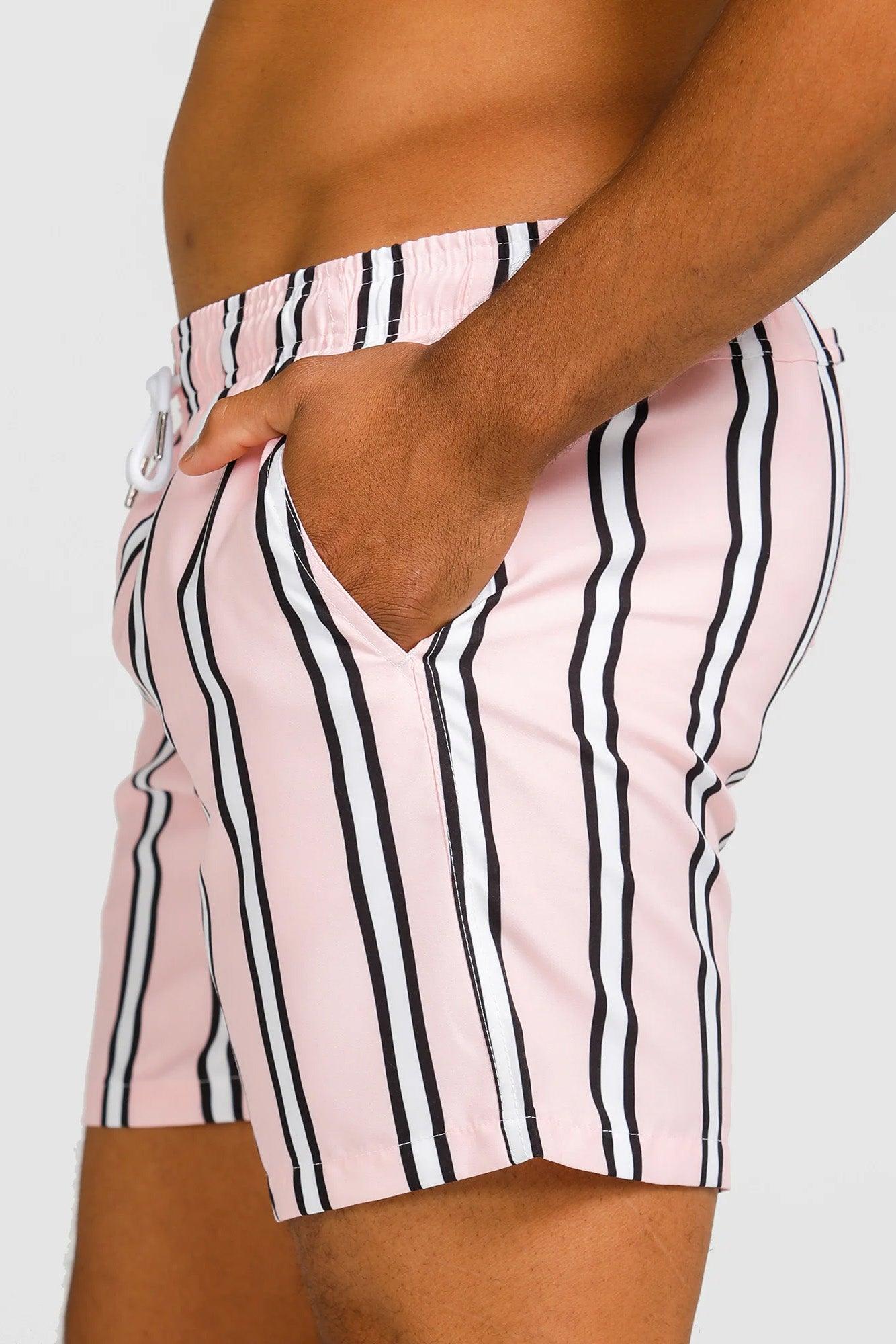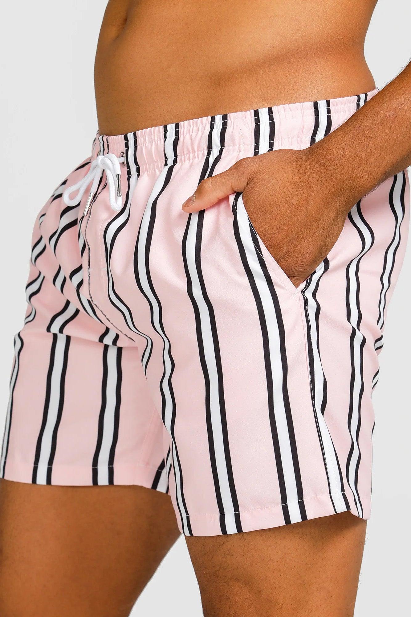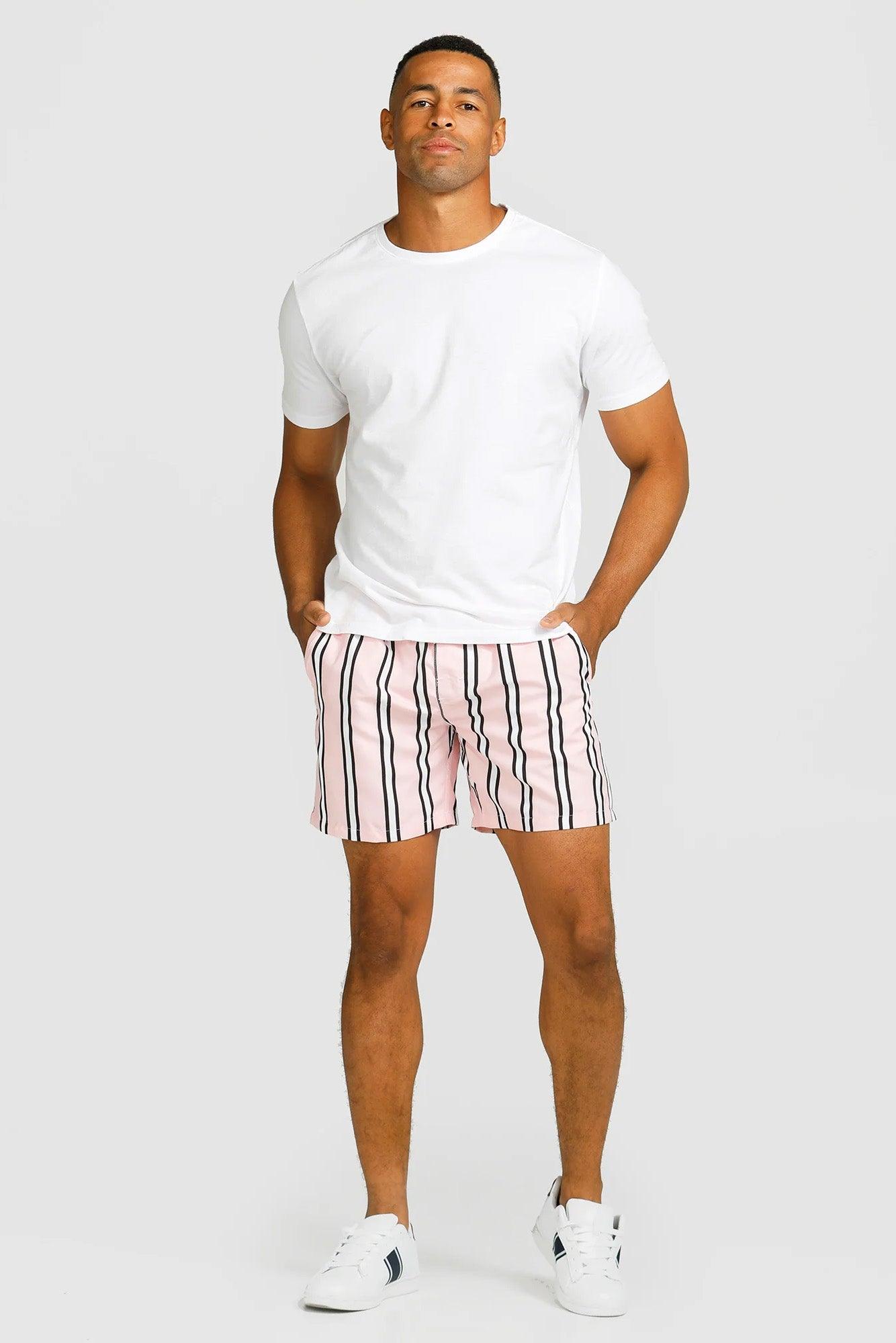 Pink with white & charcoal stripe