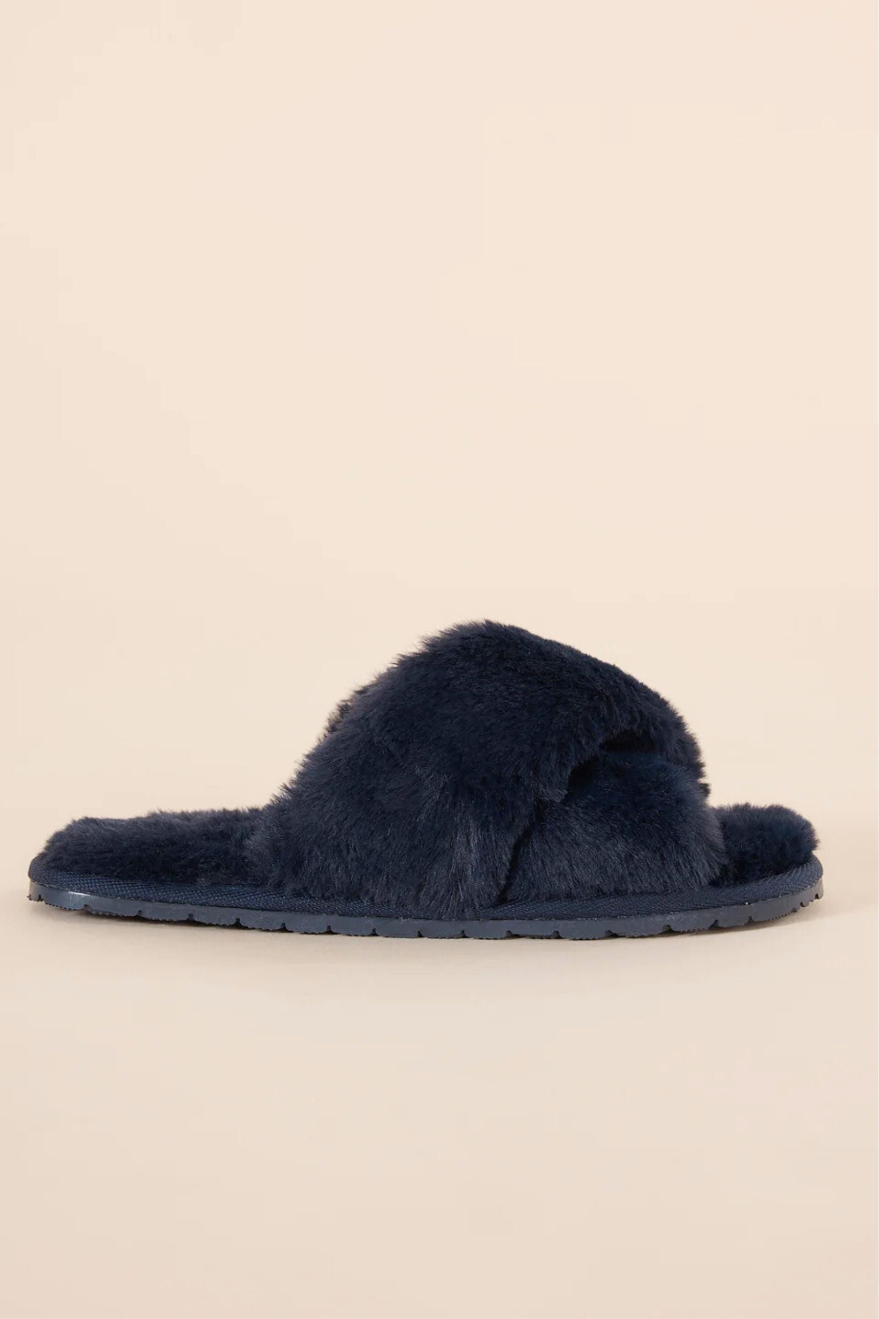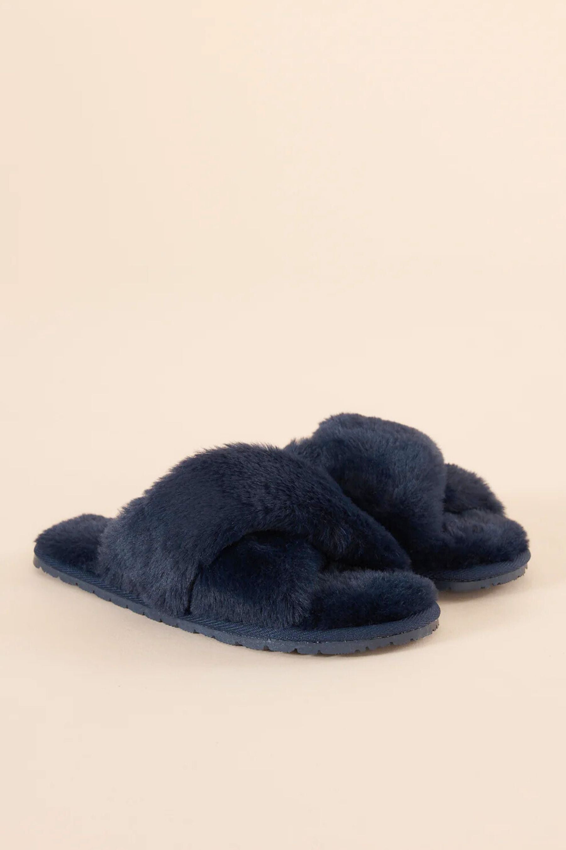 Designed to offer the ultimate relaxation experience, these slippers feature a soft, cushioned sole that feels like walking on clouds. The crossover faux fur straps add a stylish and elegant touch, while the open-toe design keeps your feet cool and comfortable. Ideal for unwinding after a long day or enjoying a cosy weekend, these slippers combine luxury and practicality in every step.