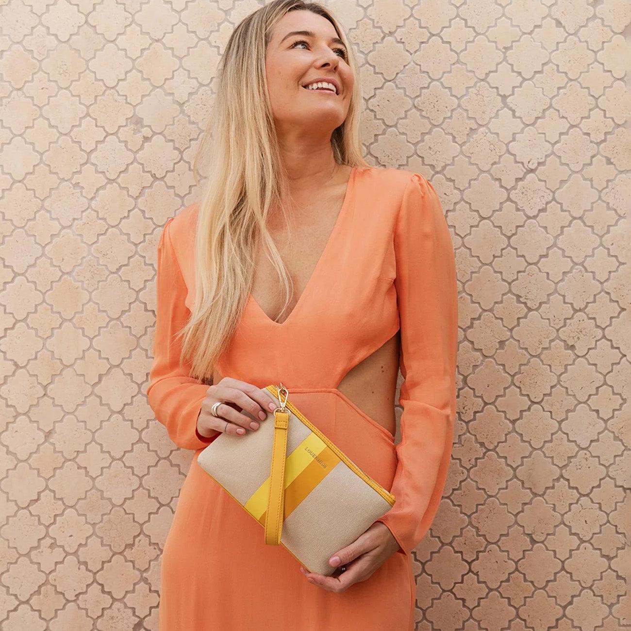 Mimi Canvas Clutch | Cream/Lemon