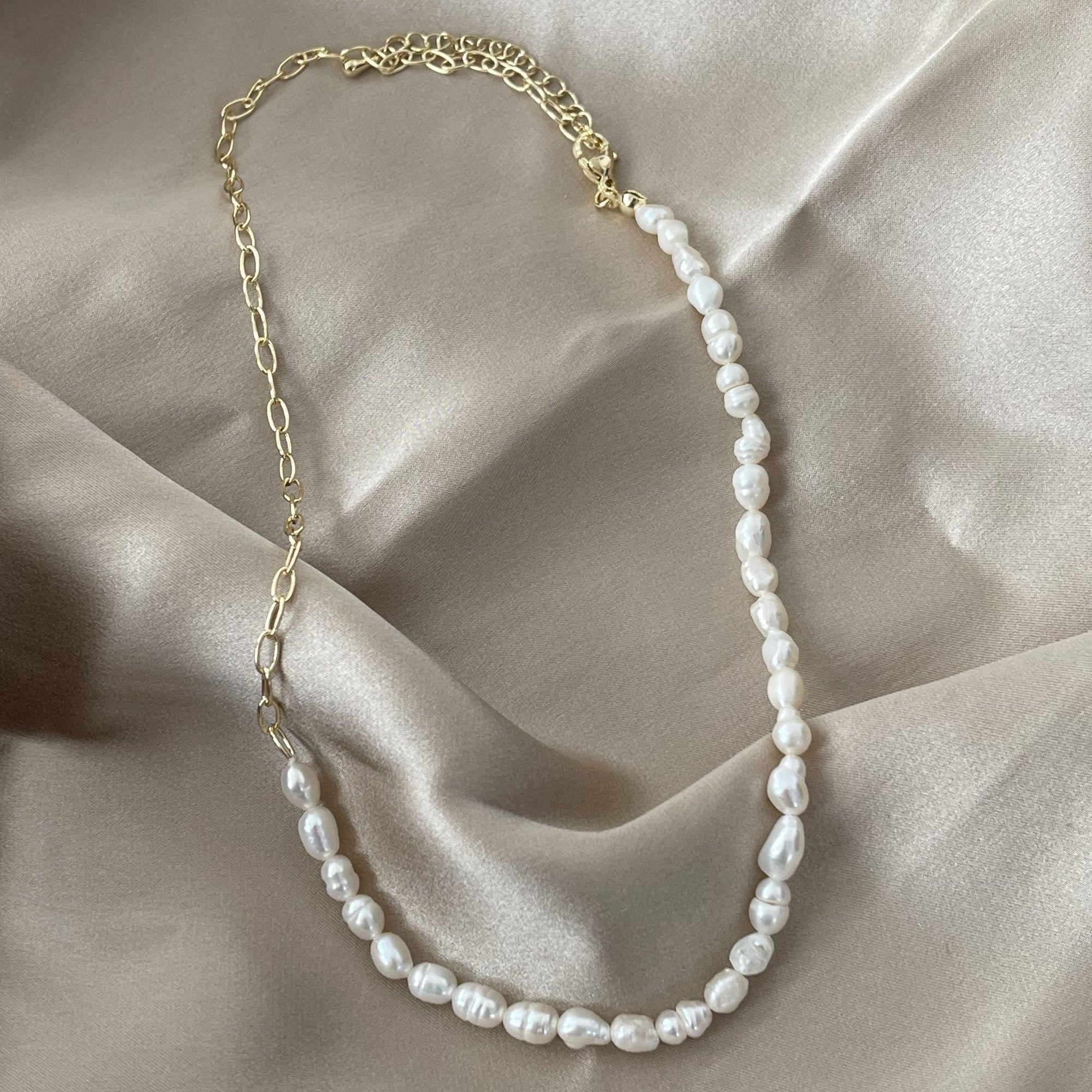 Gold filled necklace with freshwater pearls. Wear withpearls at the front, or on trend with half pearl and half chain, its beautiful.