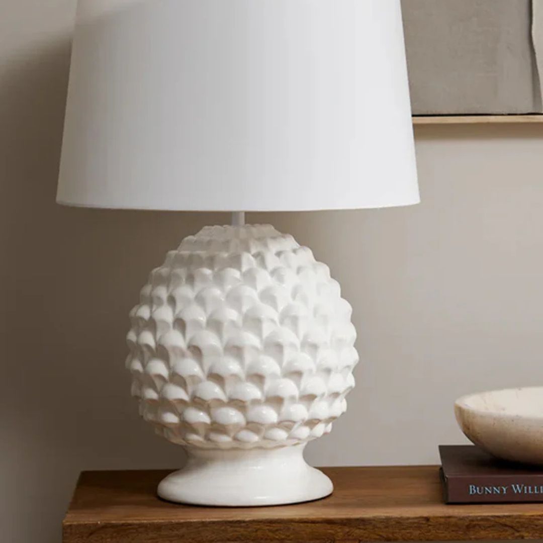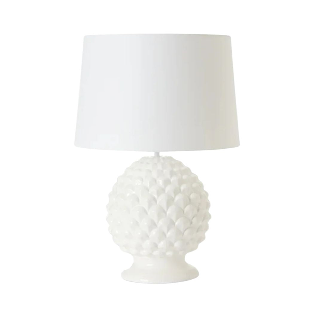Illuminate your space with the elegant simplicity of the Nichols White Lamp. Featuring an embossed white ceramic base and a tapered white shade, this lamp exudes modern sophistication, making it a perfect addition to any room.