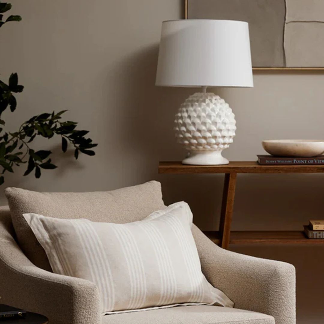 This stylish white lamp casts a warm, inviting glow, creating a cozy atmosphere for reading or relaxing. Its versatile size is ideal for nightstands, side tables, or desks, and the easy-to-use switch adds everyday convenience.