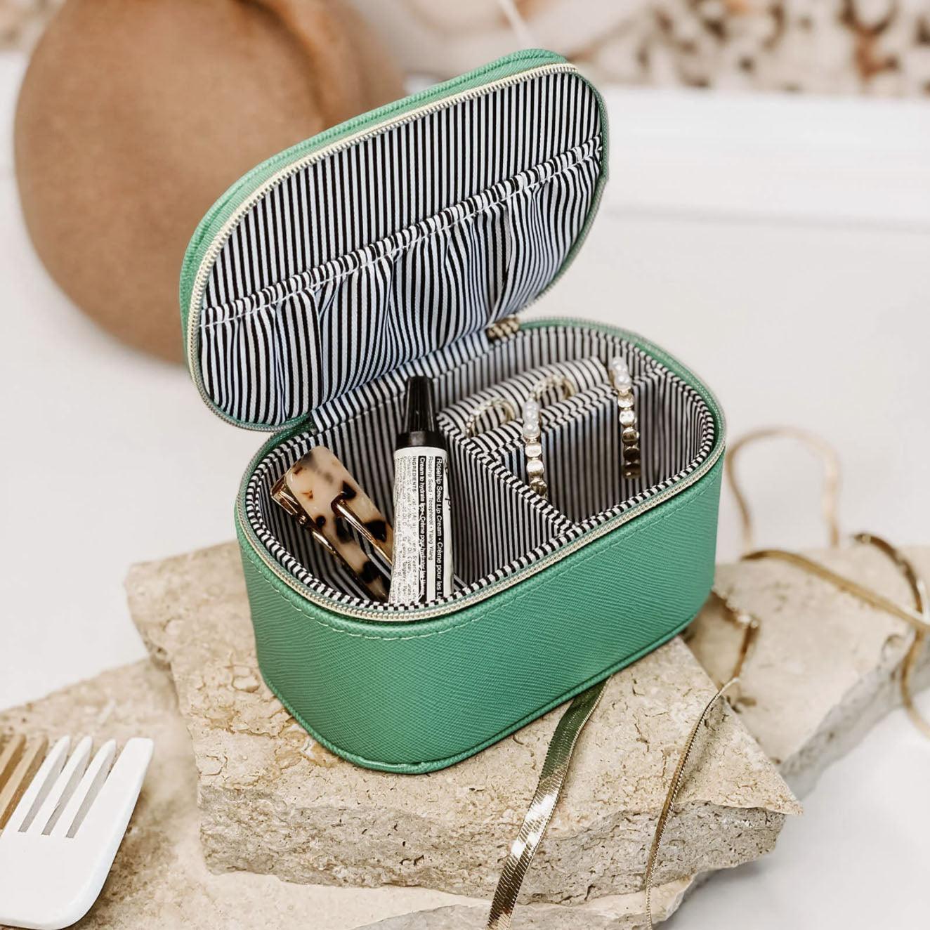 The Olive is a gorgeous oblong jewellery box with ample internal features to cater for all your jewellery needs. Perfect for travelling!