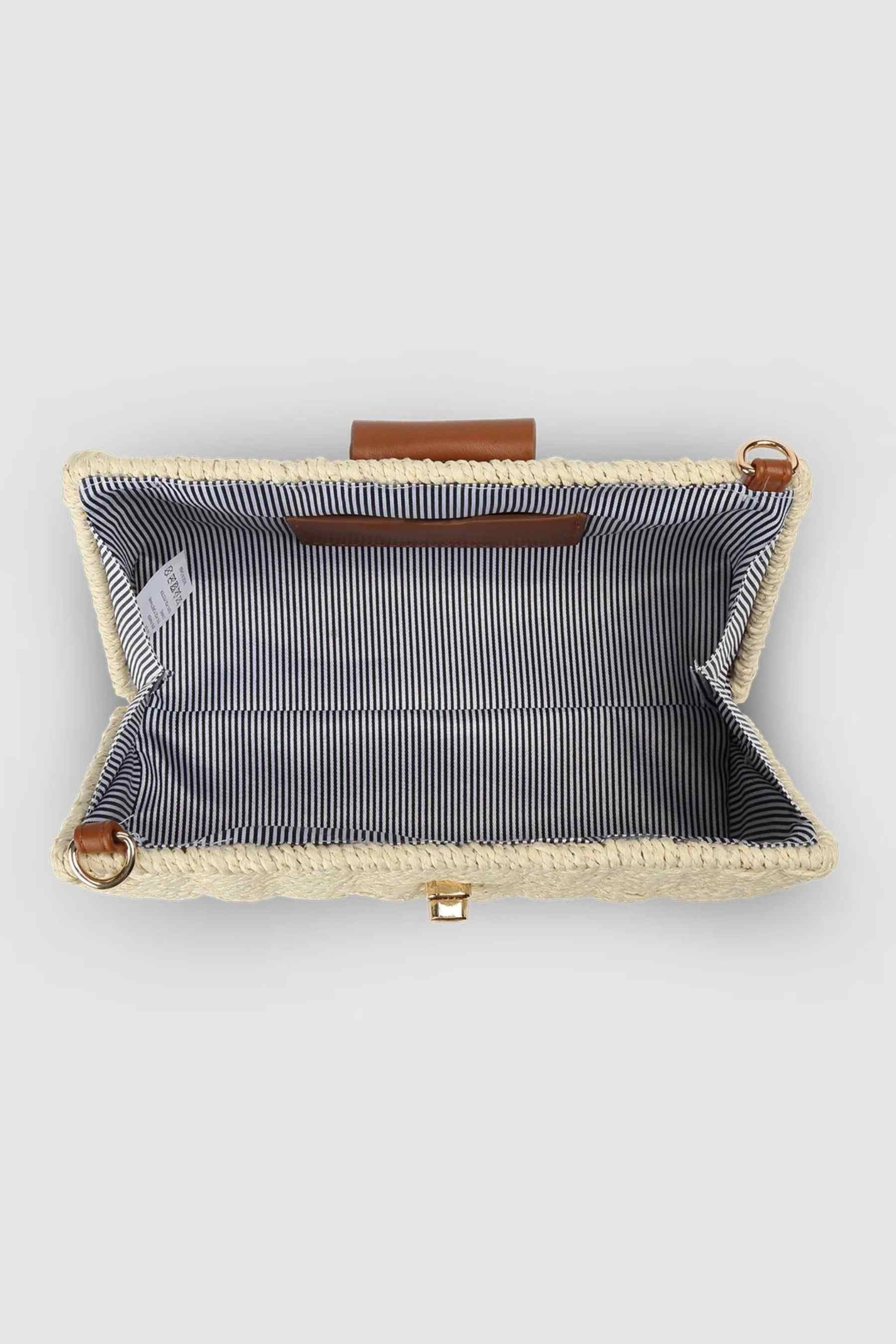 Body: Raffia 90%, Trim: Polyurethane Vegan Leather 10%