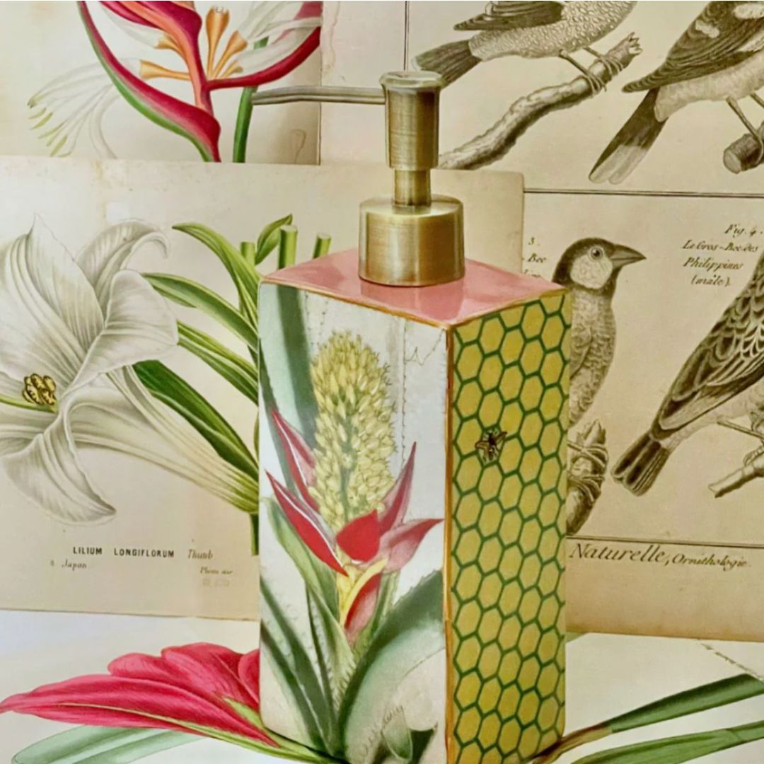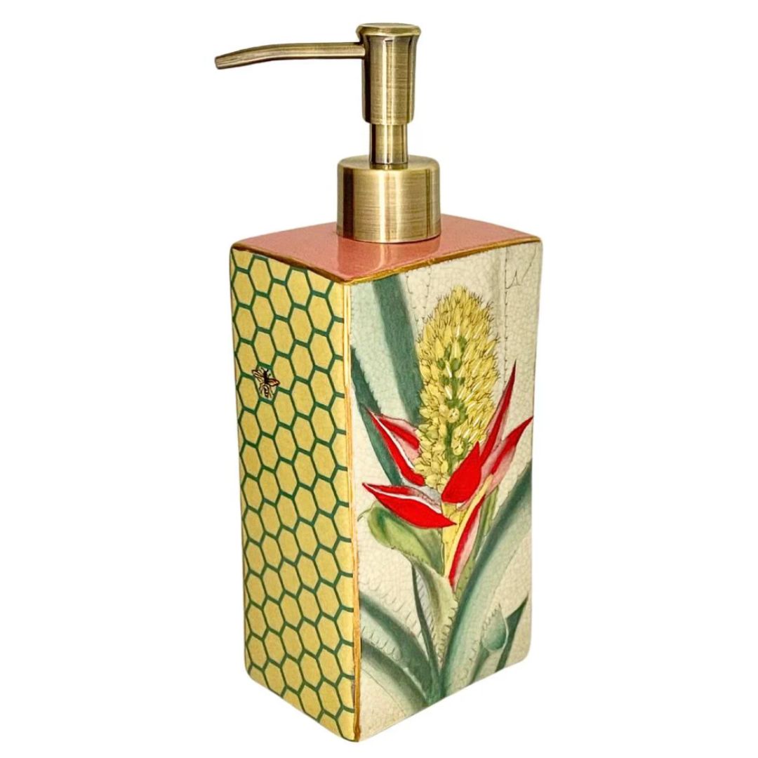 Elevate your bathroom or kitchen with the luxurious Palacio Savon Dispenser Bromeliad. Inspired by the exotic beauty of the Bromeliad flower, this handcrafted ceramic dispenser boasts vibrant colours and intricate floral detailing, transforming any space into a tropical paradise.