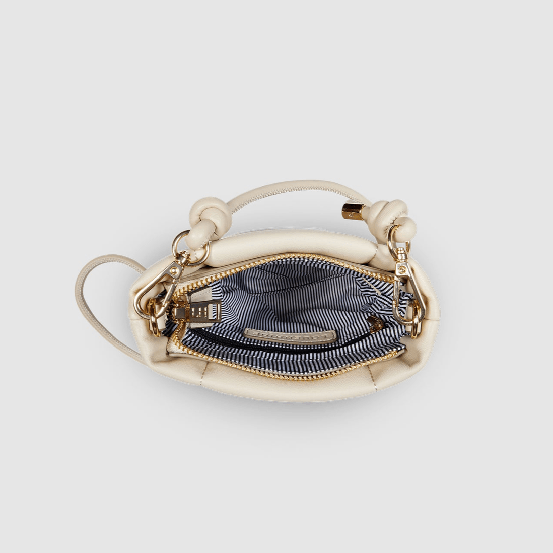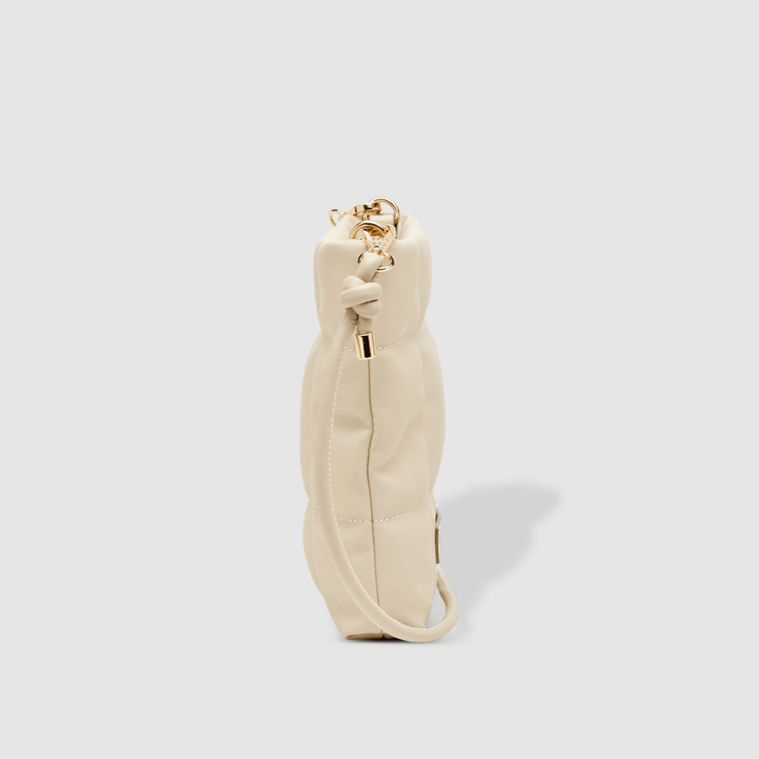 The Louenhide Phoebe Phone Crossbody Bag is a compact, on-trend modern phone bag. Made from high-quality polyurethane, this phone bag features a unique box quilt stitch pattern that gives it a puffer jacket effect. It has one internal slip pocket and one internal zip pocket, making it easy to organise and access your phone and other essentials. The light gold hardware and beautiful knot detailing on the shoulder straps adds a touch of elegance to the overall look of the bag. This cute crossbody is the perfect neutral accessory this season.