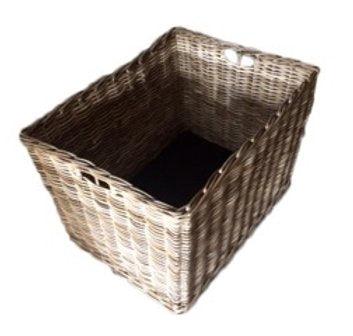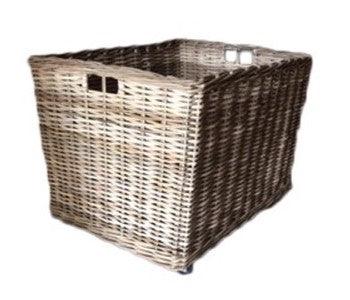 Large Single Rectangular Rollaway Rattan Deep Storage Basket with Grip Handles and Castors in Kubu Grey Finish.