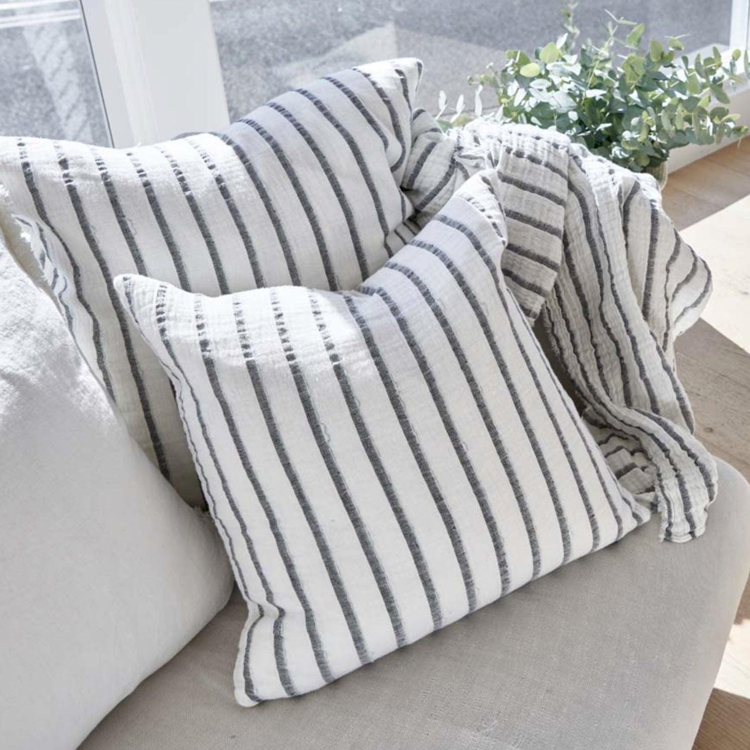 As comforting as the cool sea breeze, our Sea Spray Cushion is crafted from a beautiful linen/cotton blend that feels incredible to touch. Fresh, clean and timeless, this beauty will make a welcome addition to your interior styling as a throw pillow on your bed or sofa.