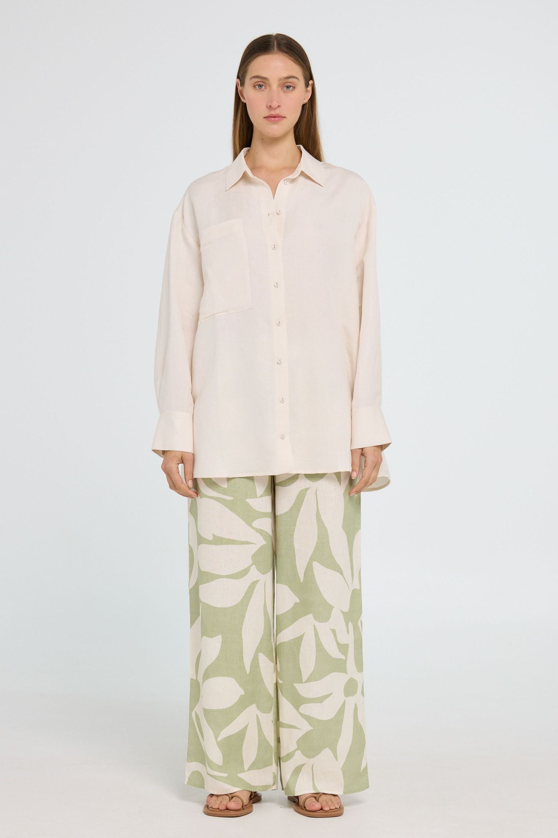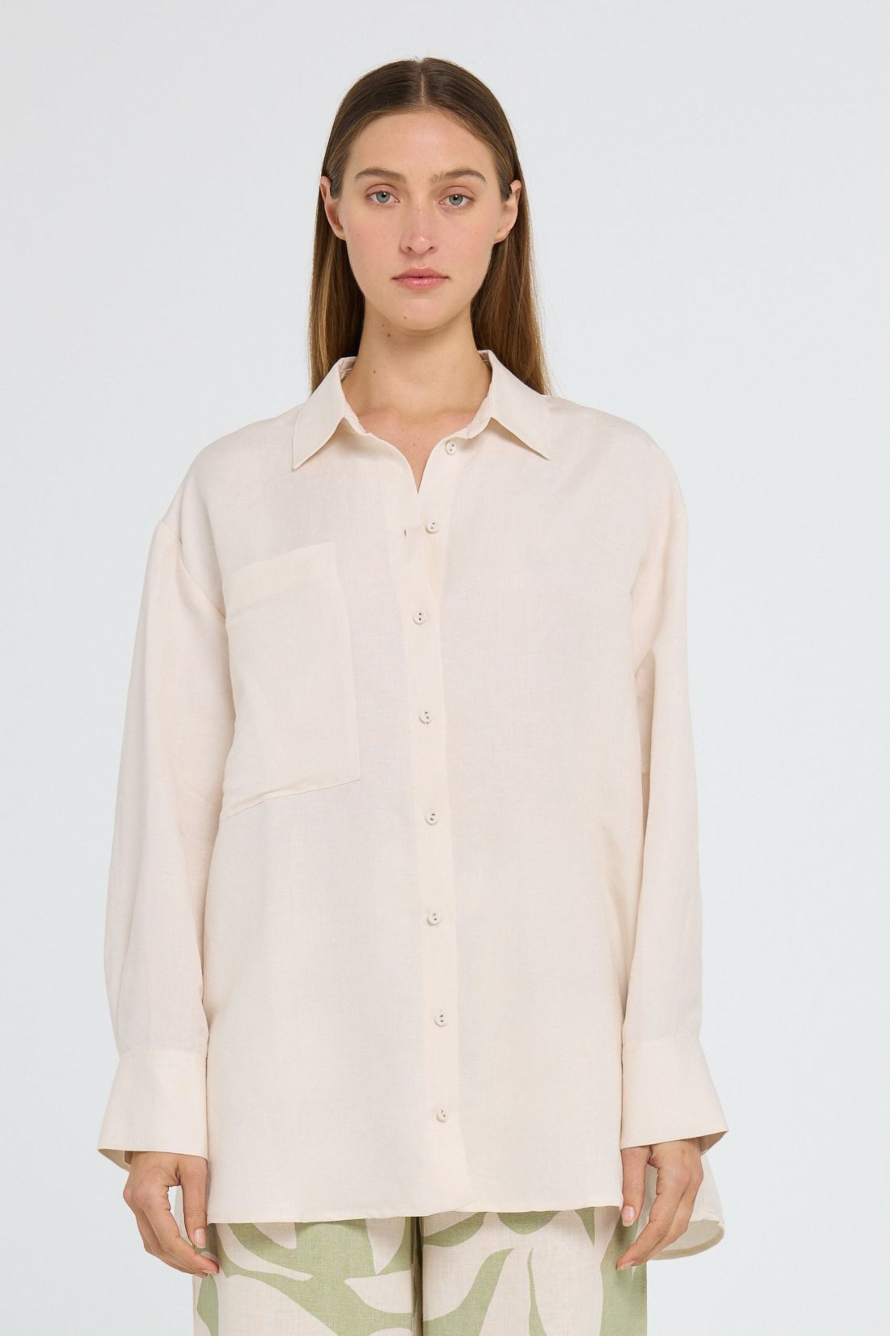 Embrace relaxed sophistication with our Oversized Shirt, crafted from a breathable linen-viscose blend for a lightweight, airy feel. Designed in a soft oat hue, this neutral staple exudes effortless elegance, making it a versatile addition to any wardrobe.