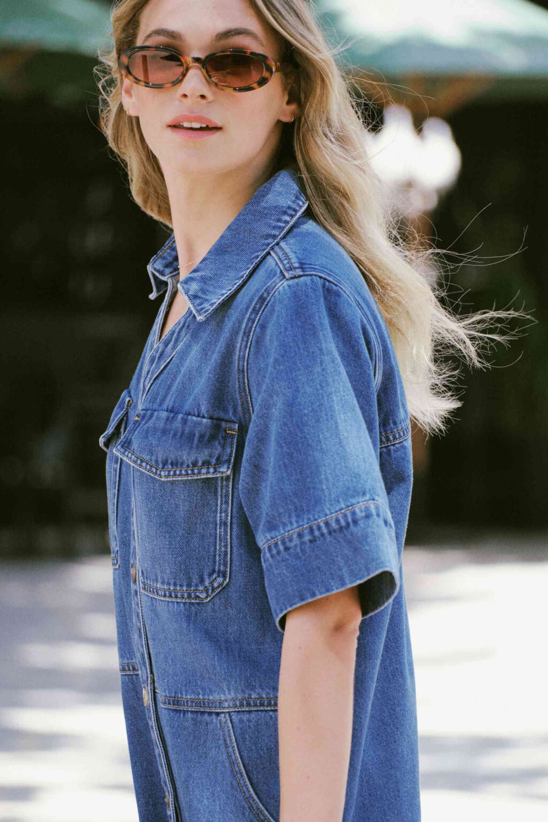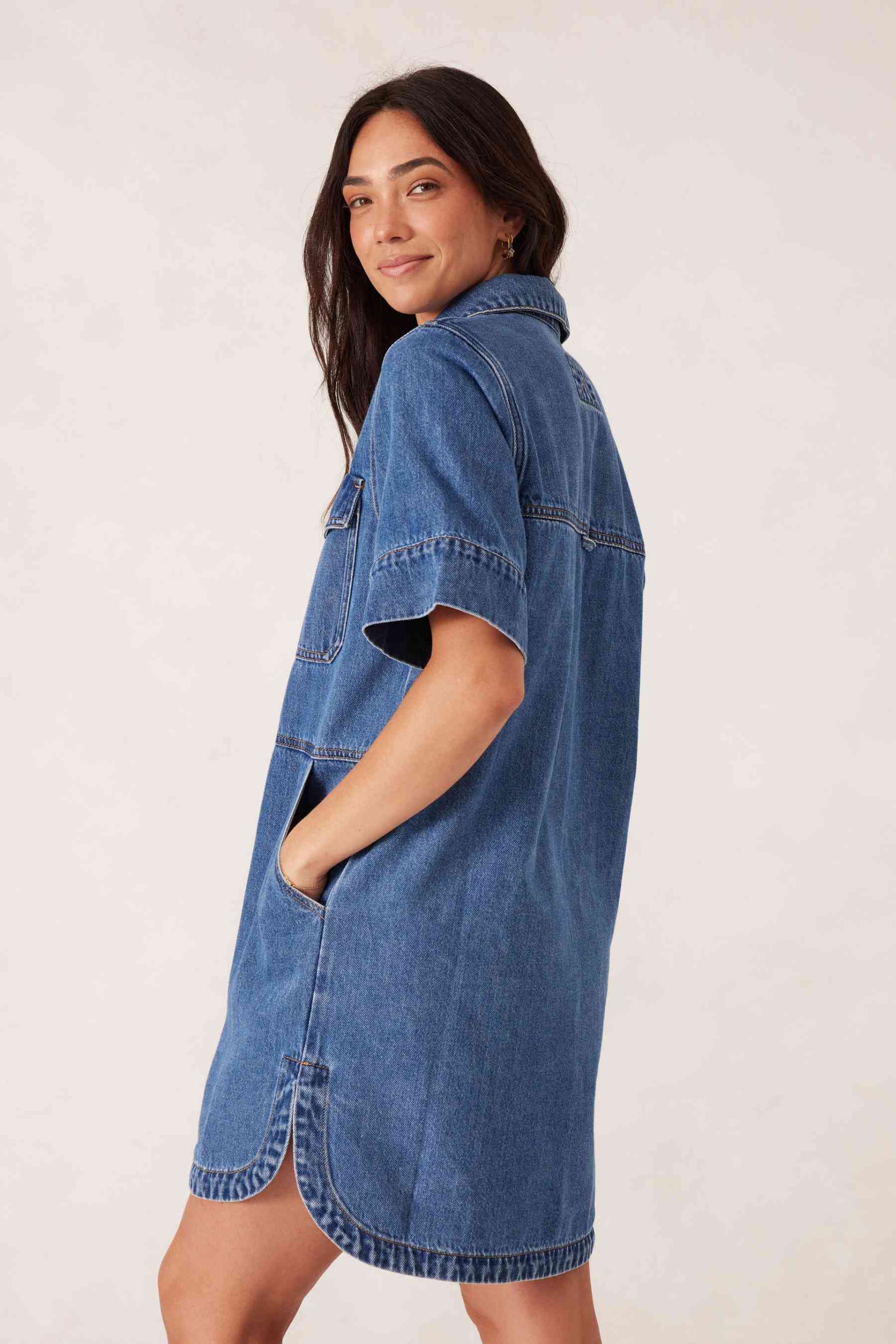 Meet effortless style with our Side Pocket Boxy Dress. Crafted from mid-weight denim with a soft finish, this dress features 100% organic denim, a relaxed fit, and a mini length with shaped hem and side splits. Complete with a front waist seam and pockets, it's the perfect blend of comfort, practicality and style.