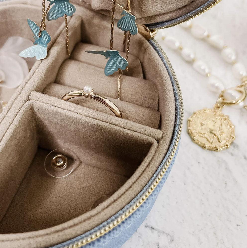 The Sisco is a sweet round jewellery box with ample internal features to cater for all your jewellery needs. Perfect for travelling or to throw in your handbag!