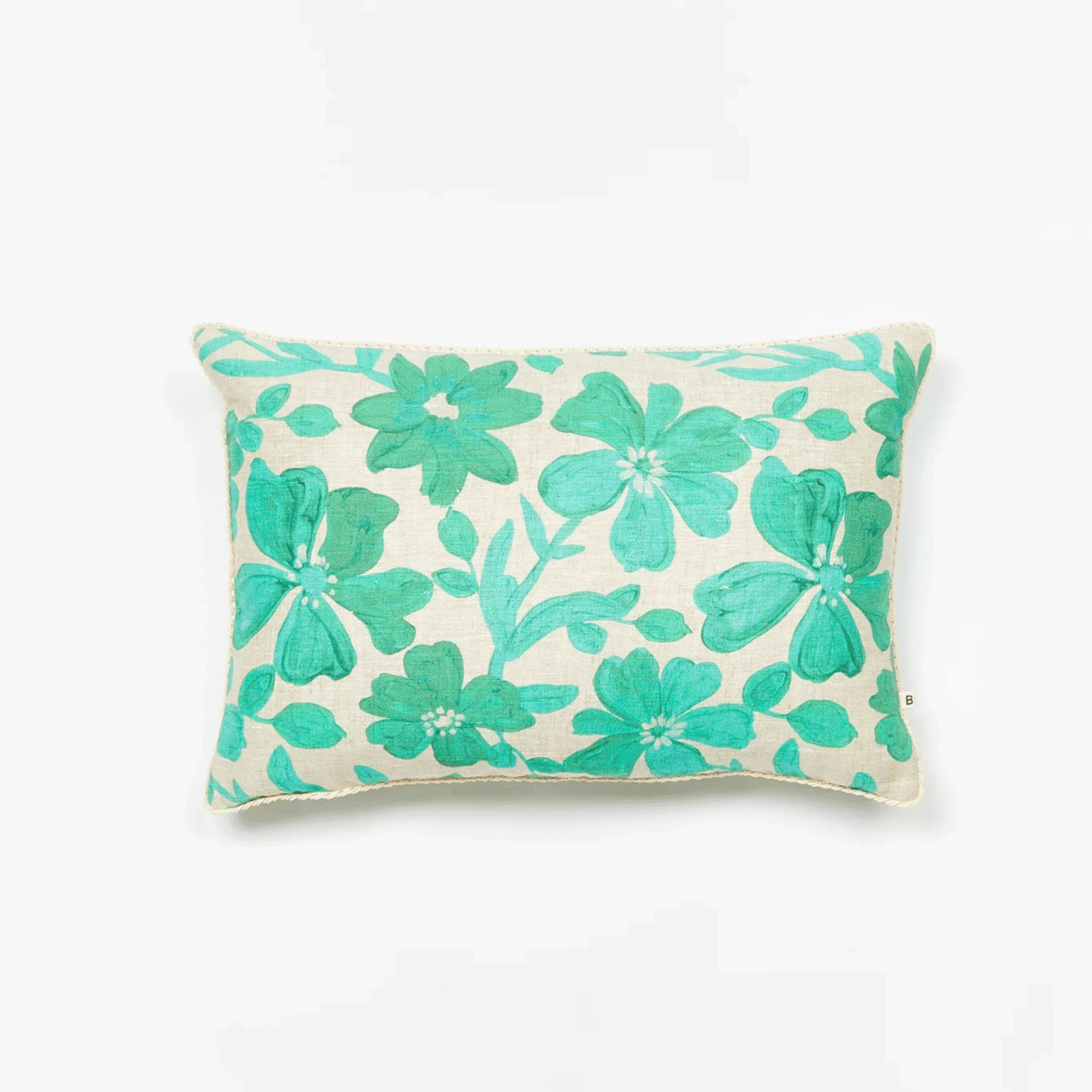 Our Small Dogwood Pistachio 60x40cm cushion features original artwork by Bonnie printed on linen. The reverse of the cushion features the same design.