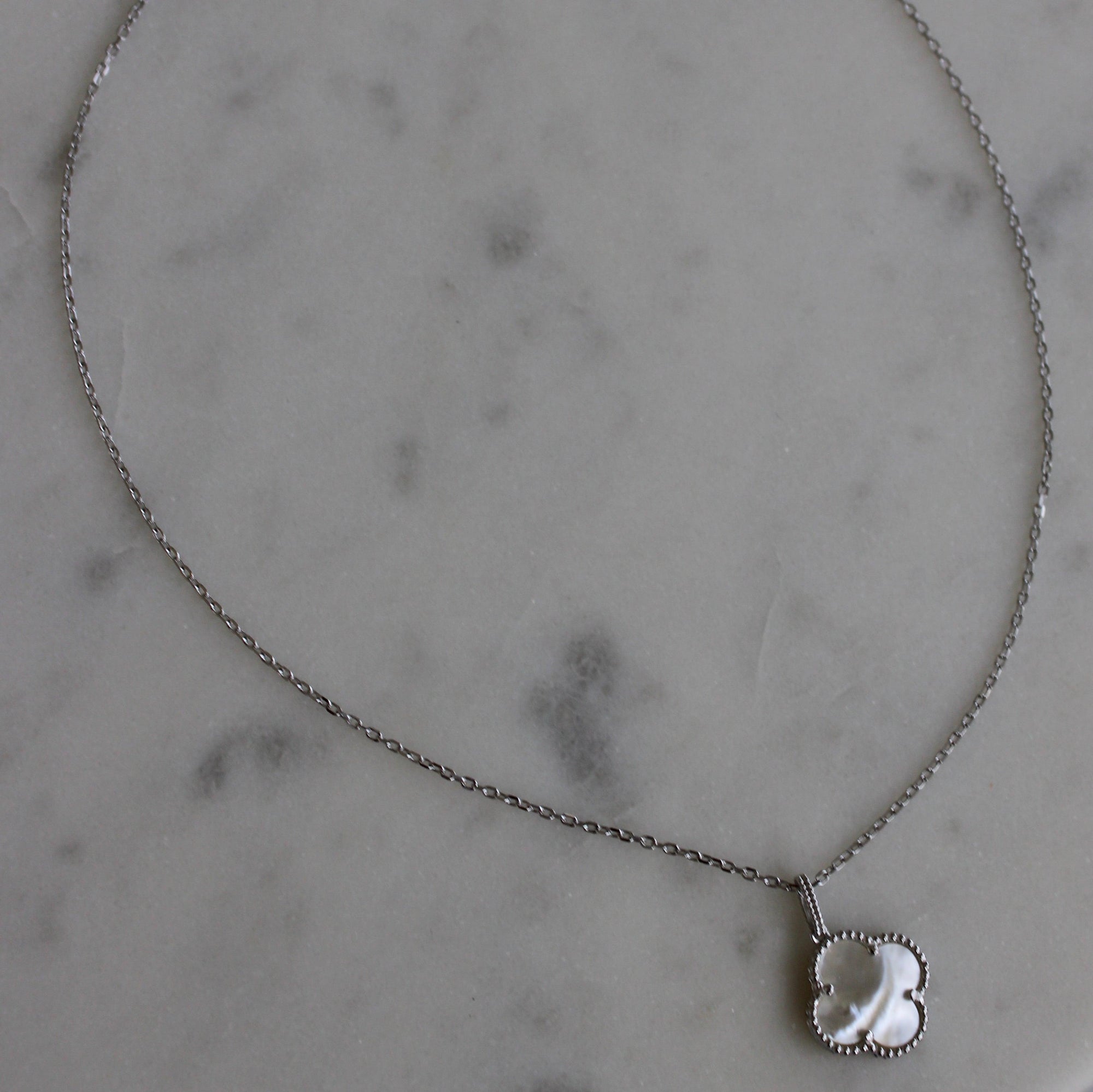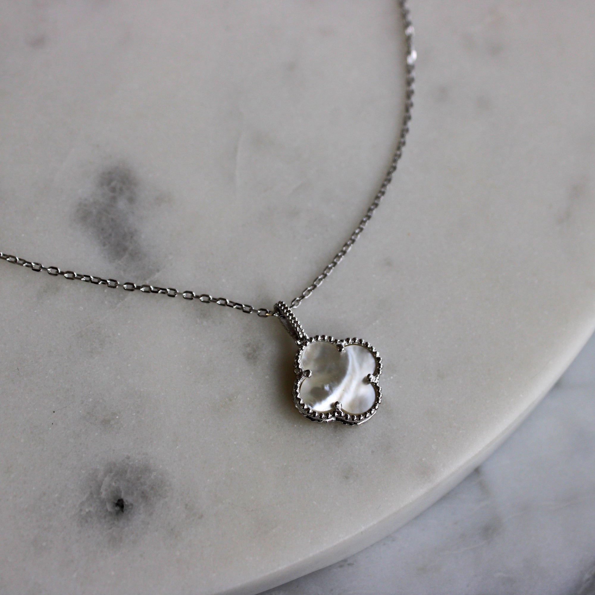 Sterling Silver Necklace with White Mother of Pearl Clover