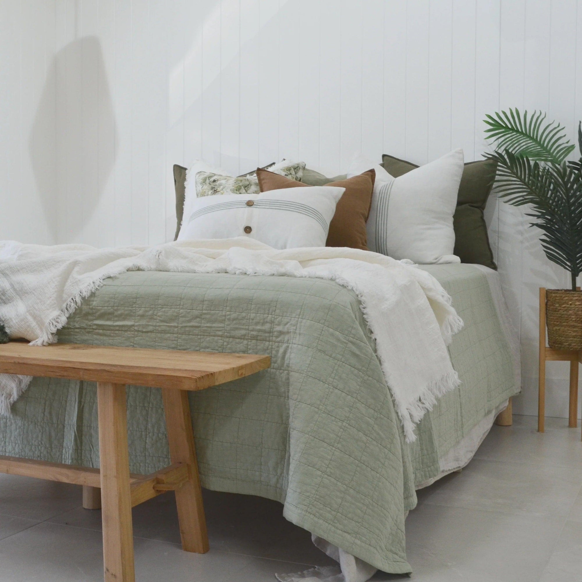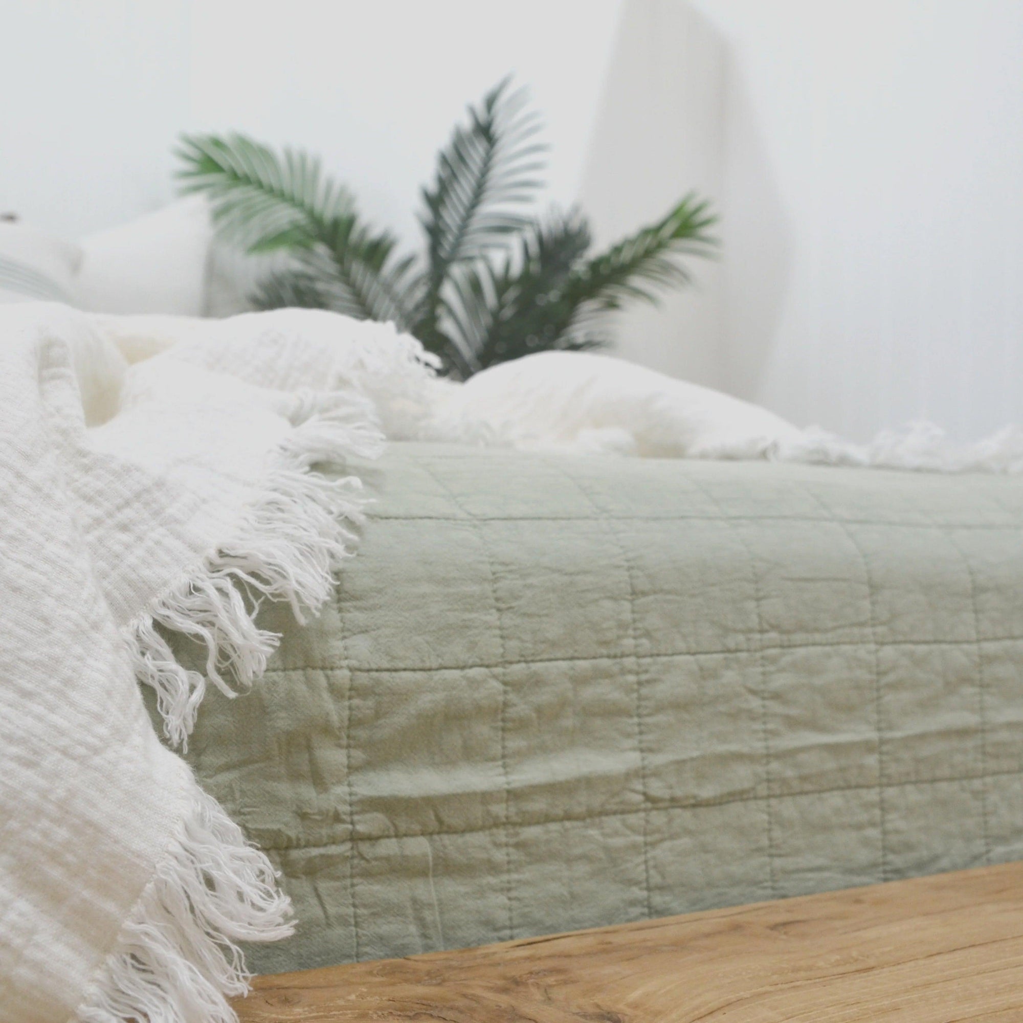 Stonewashed Cotton Reversible Quilt | Sage Green