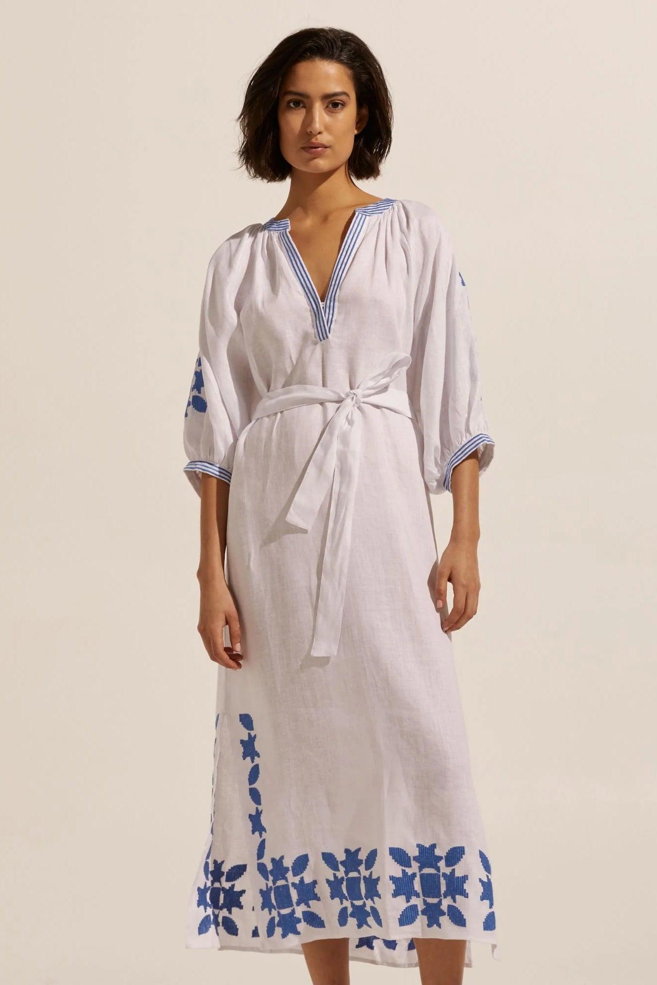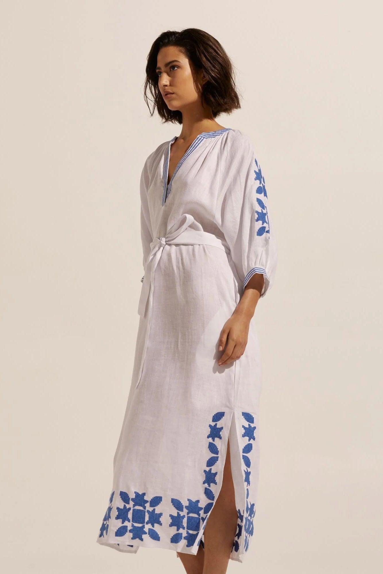 enter the sundial as your effortless and cosmopolitan holiday staple. this breezy midi style takes