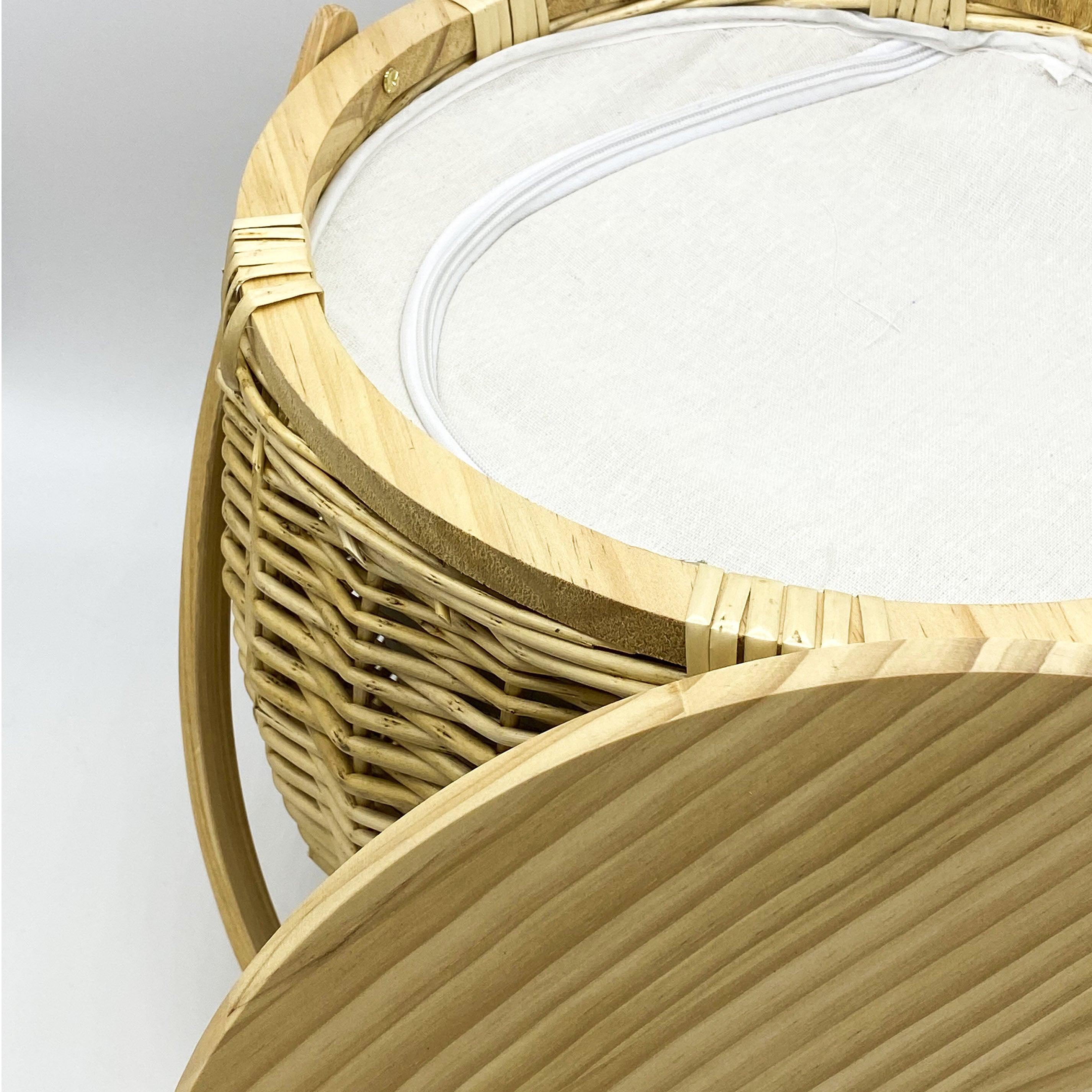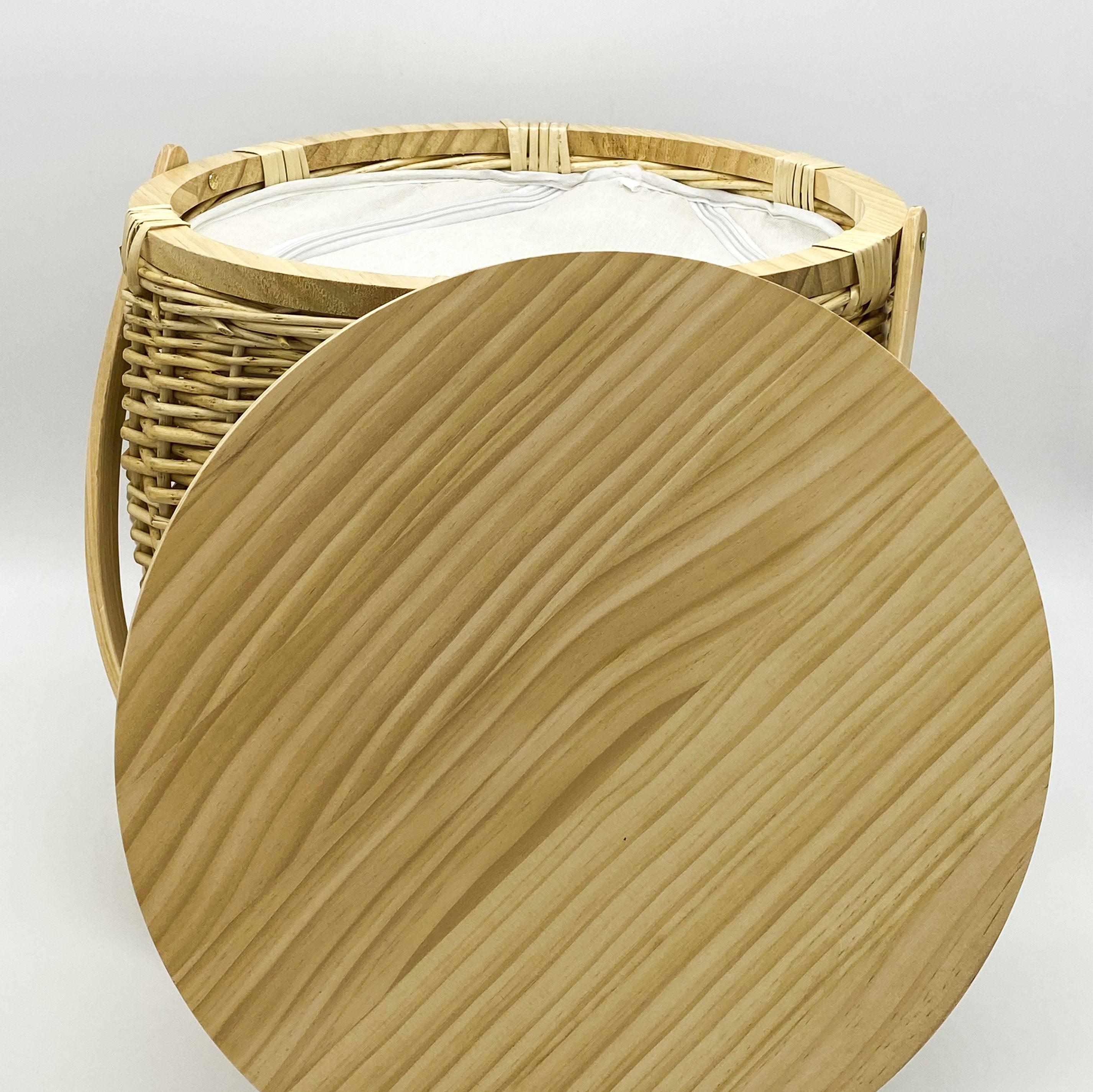 Our Portsea baskets are natural undyed Willow giving a gorgeous blonde colour. Our baskets are made by hand using a natural product therefore no basket is the same & natural imperfections will occur. A food grade varnish is applied to our lids in an Australian Warehouse so we know exactly what product is being used.