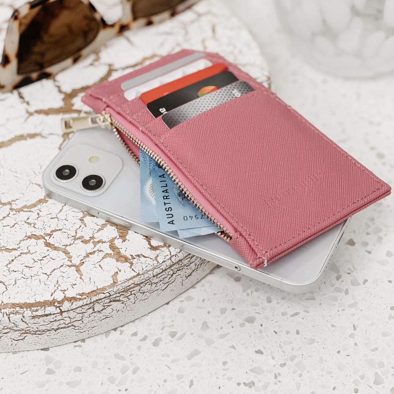 The Louenhide Tia Cardholder is your new ultimate on the go accessory! For the minimalist, the Tia has just enough room for the essential few cards and those loose coffee coins. This compact card carrier is beautiful and structured in a hatch vegan leather, available in gorgeous summer brights to keep her from getting lost in your everyday bag!