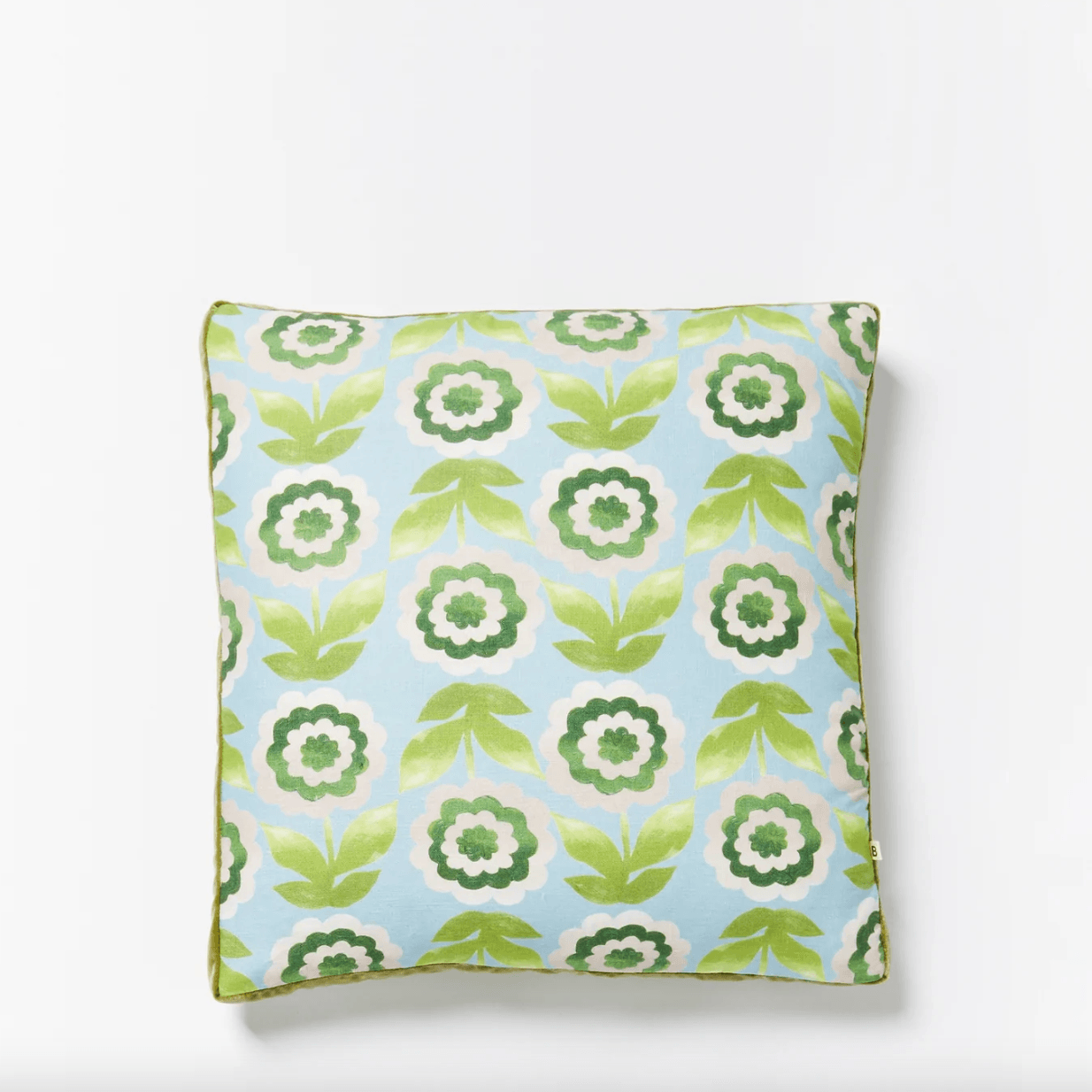 Our Tiggy Blue 50cm cushion features original artwork by Bonnie printed on linen. The reverse of the cushion features the same design.