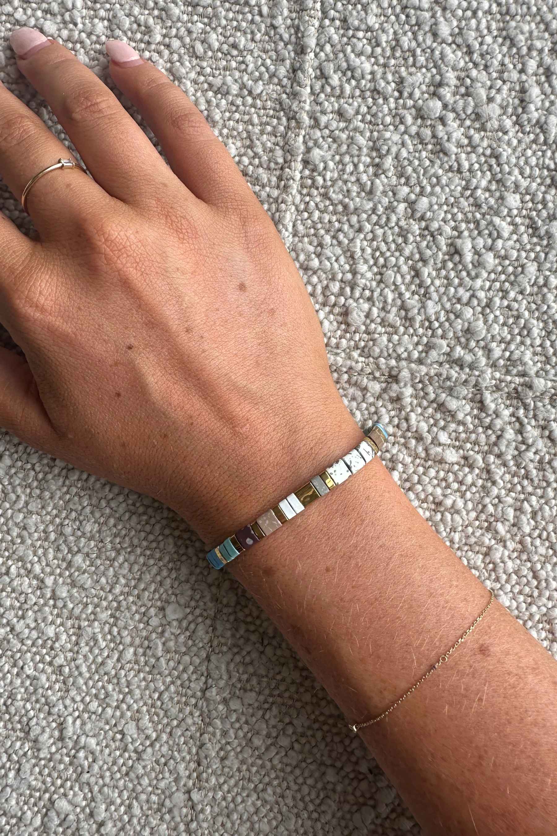 Tile Bracelet | White Speckle, Turquoise, Brown Multi