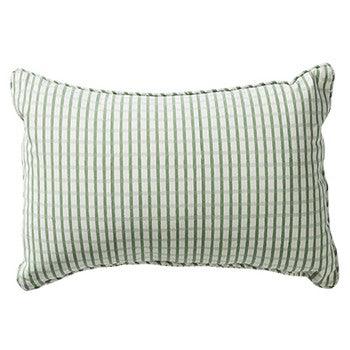 The Valentina Town Cushion has an overprinted design of checked gingham in Sage and Grey, and is finished with printed piping. The reverse features Sage pinstripe.