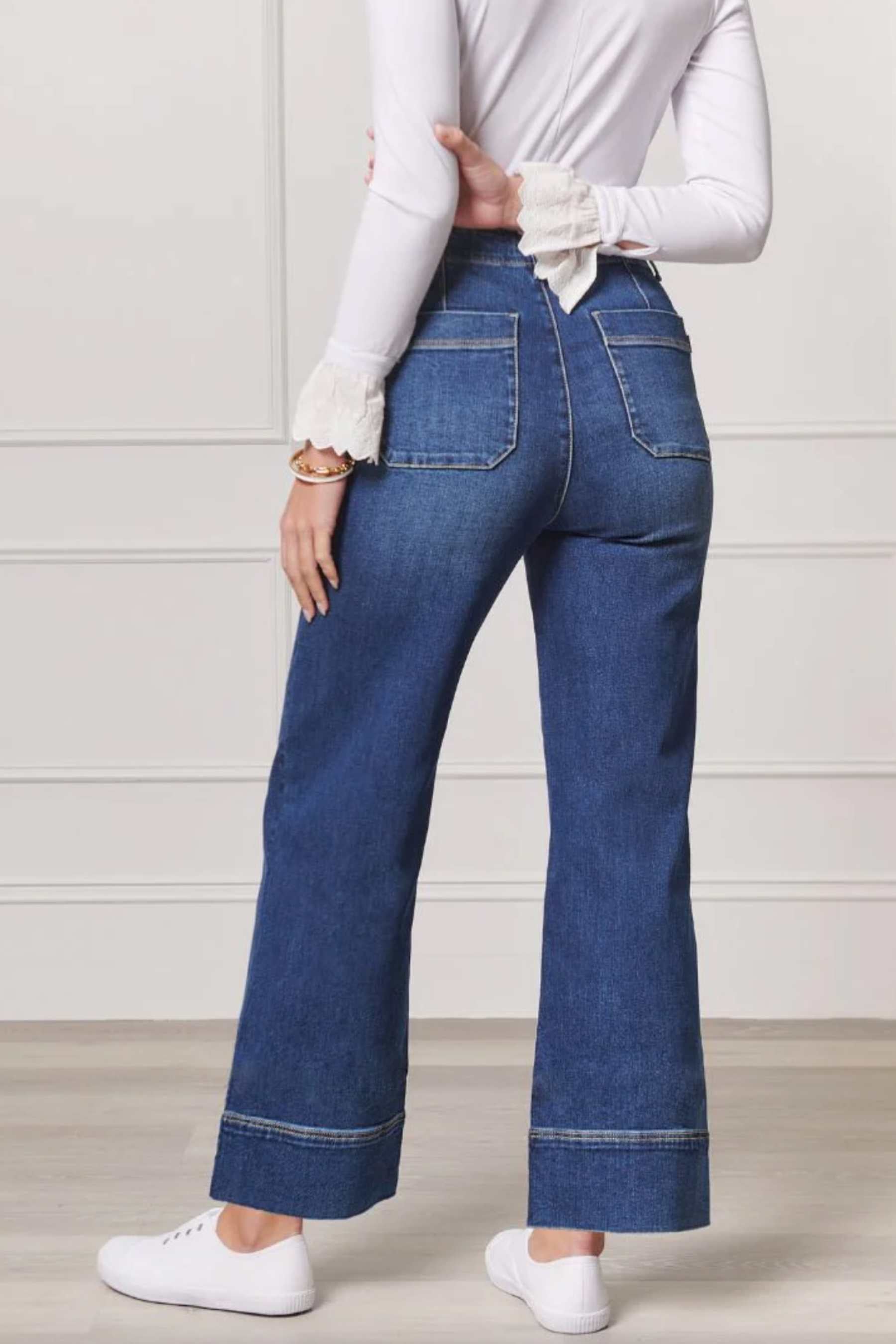 For supreme elegance pair with a silk blouse and your favourite heels or boots. Worn with a classic tee and sneakers, denim is an everyday, classic essential. From tiny to voluptuous, these wide leg denim jeans provide a flattering silhouette and hold a special place in any capsule wardrobe.