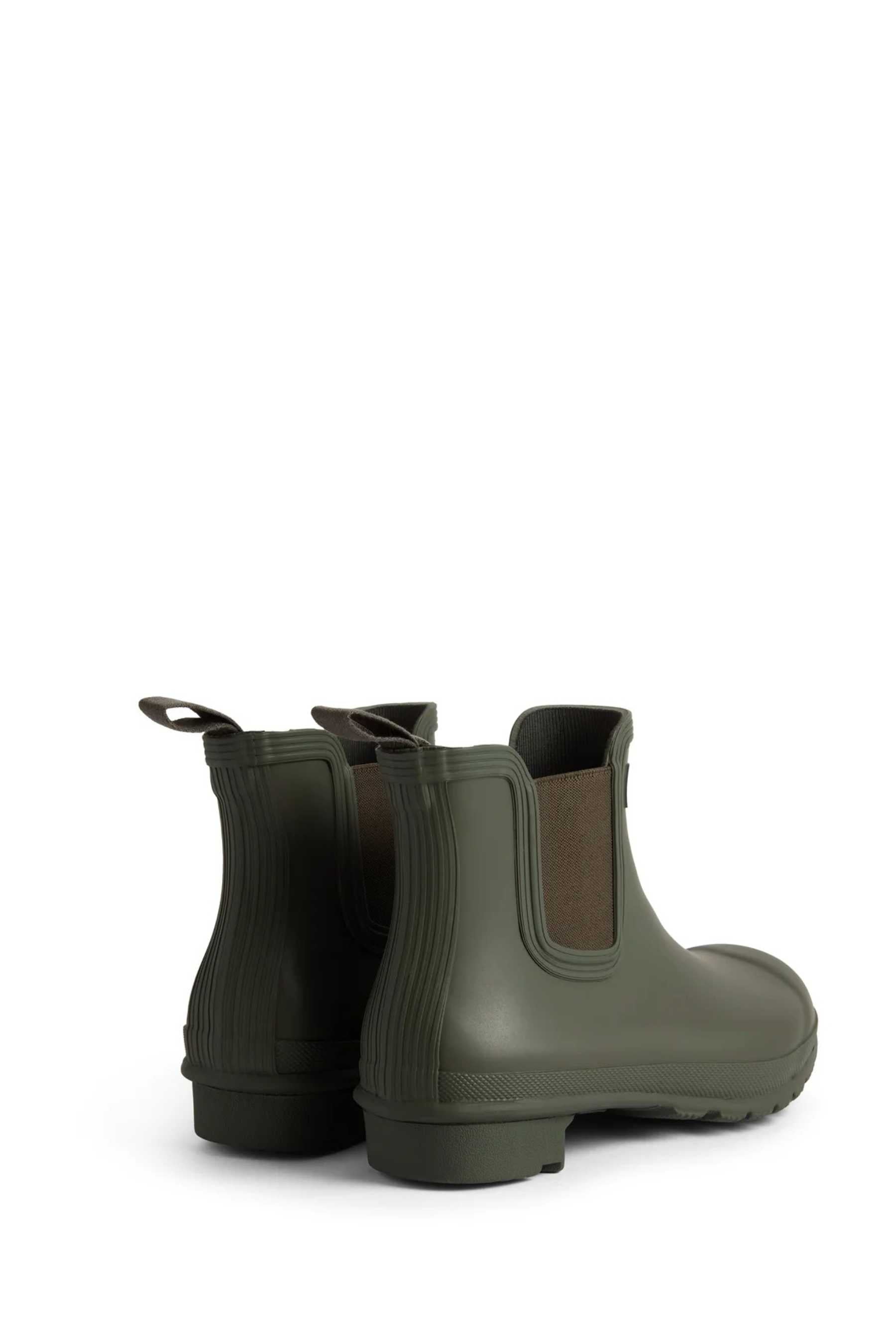 The Hunter Original Chelsea Boot has been re-engineered for an improved fit and all-day comfort. A wider ankle circumference, and an increased curve in the heel and around the Achilles tendon delivers an even more comfortable fit. The new and improved Hunter Original Chelsea Boot has an even more optimum fit to maximise all-day comfort. Ready for rain, each boot is handcrafted from natural rubber and vulcanised for superior protection. Retaining the iconic features of a traditional Chelsea, it features elasticated-gussets and has a nylon pull-tab to make stepping into the boot easy. In a classic black matte, these waterproof Chelsea's are a wet weather wardrobe essential.