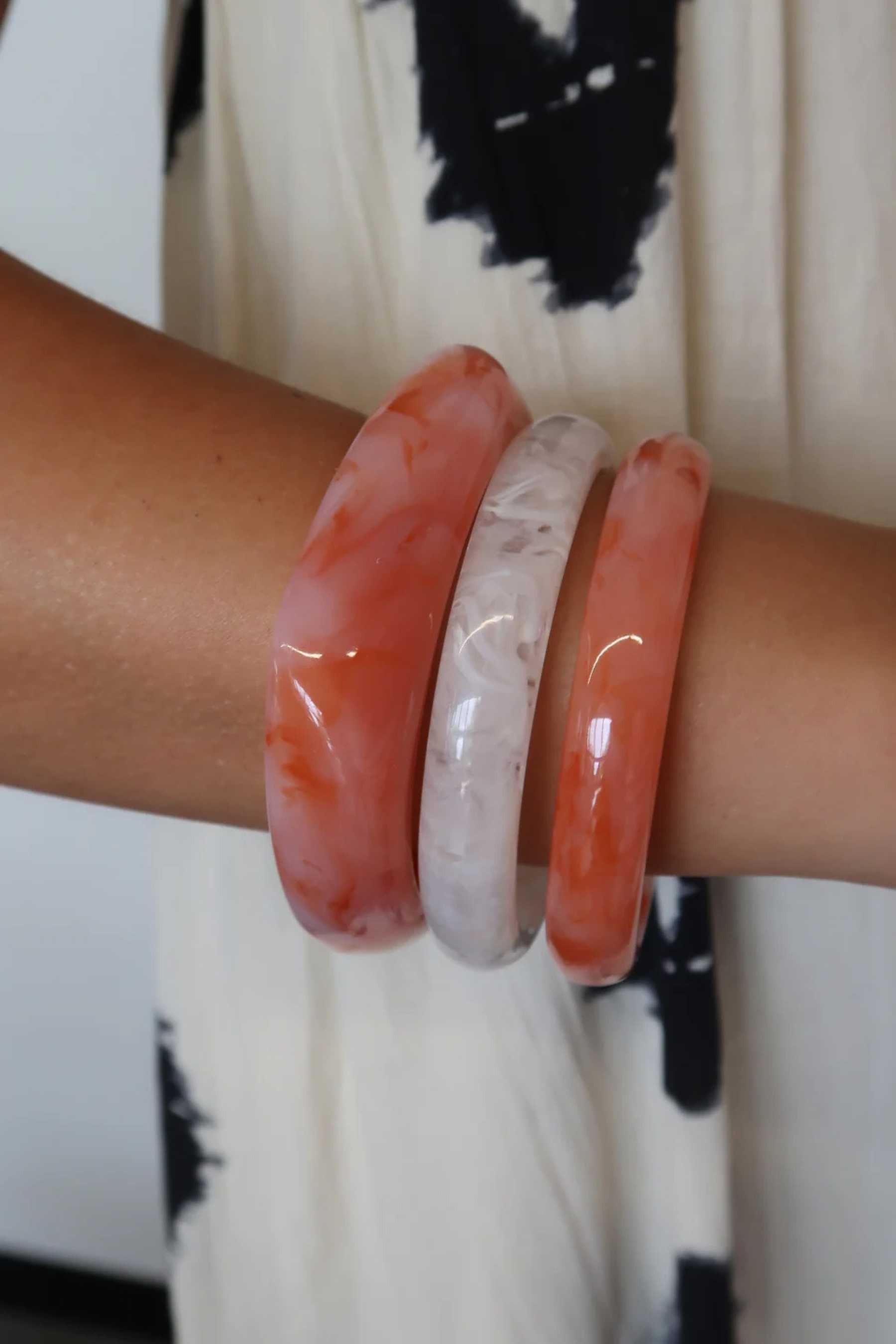 The Zoey Bracelet is a modern masterpiece, featuring a sleek enamel design in a soft cloud white hue. Its clean, minimalist aesthetic makes it a versatile accessory, perfect for elevating any outfit from casual to chic. Whether worn solo for understated elegance or stacked for a bold statement, the Zoey Bracelet is a must-have addition to your jewellery collection.